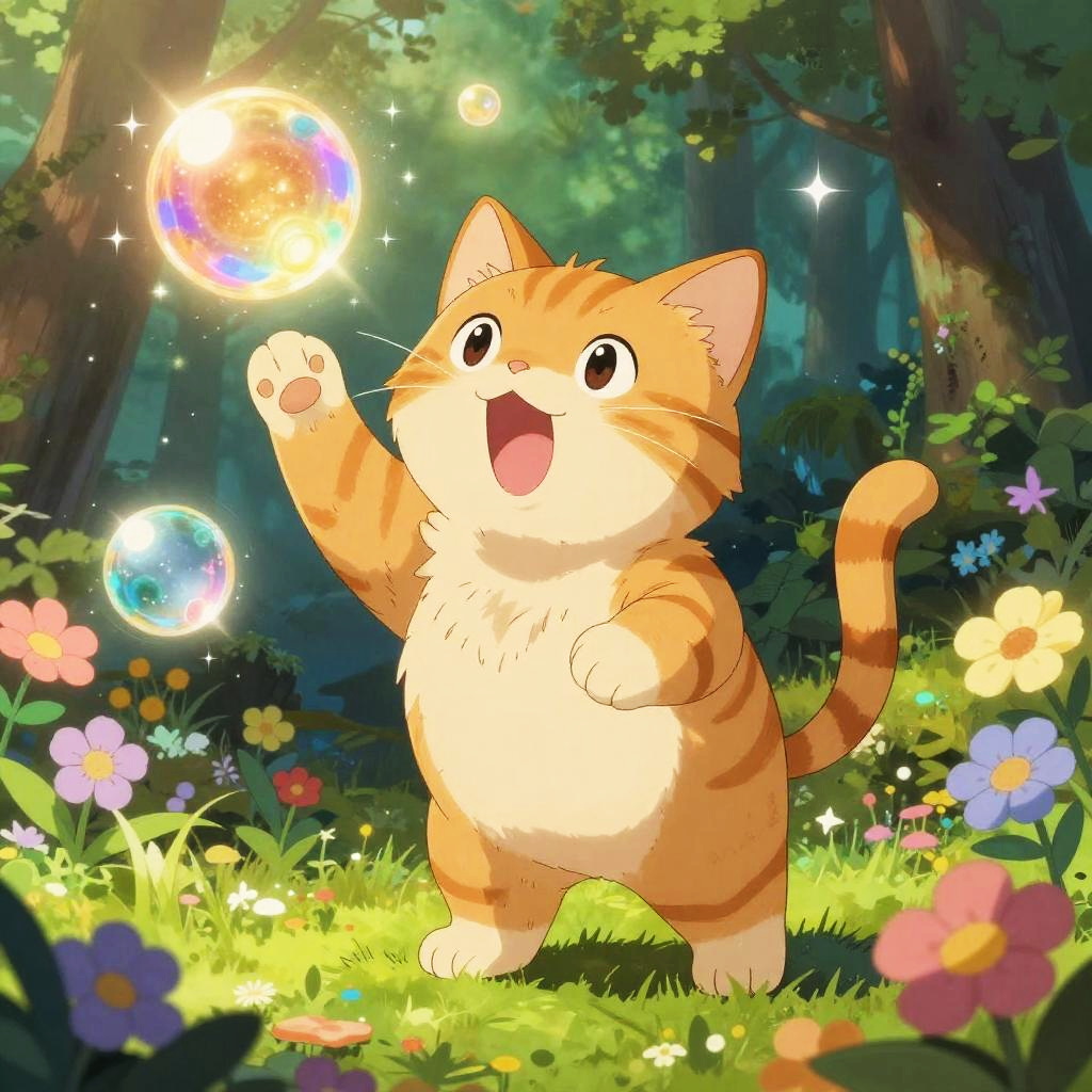 Orange cat anime styled as a mischievous ninja, wearing a tiny headband and wielding shuriken, dynamic action pose in a traditional Japanese village at dusk, glowing lanterns and falling cherry blossoms, detailed anime art with energetic vibe.
