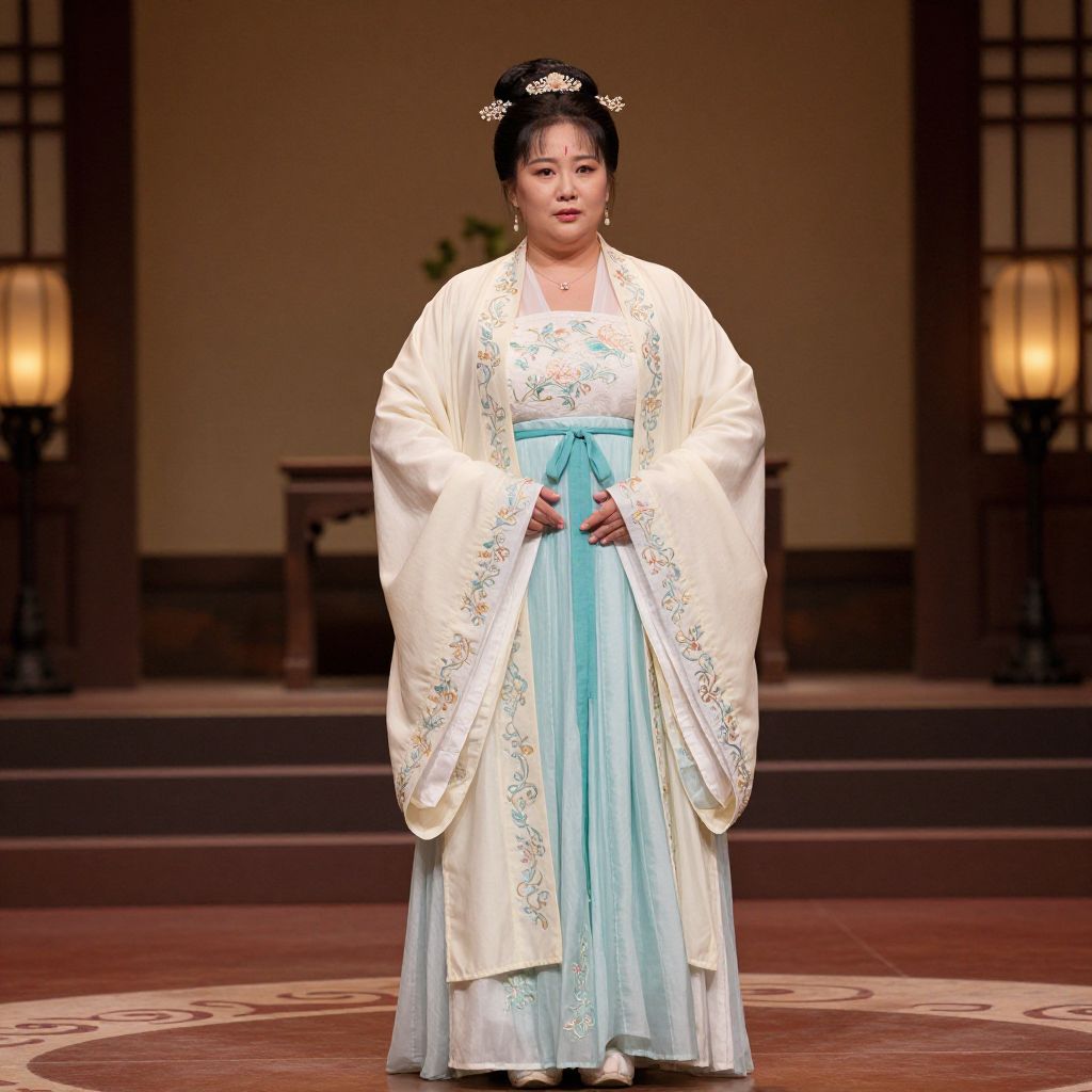 Costume Thick Woman, woman in a traditional chinese dress standing in a hall