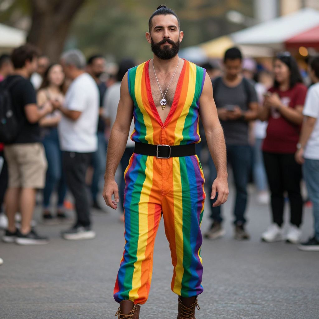 Confident Man in Rainbow Outfit