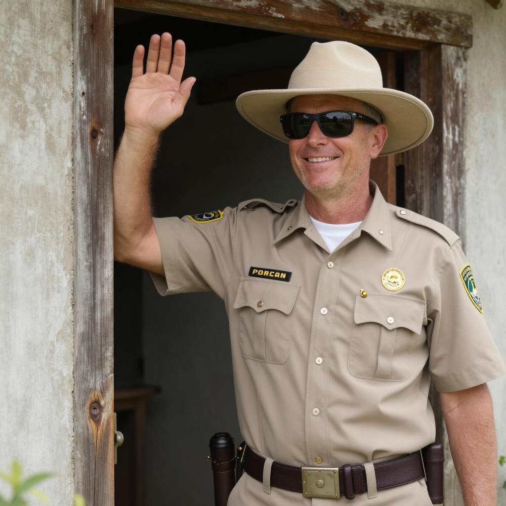 Cheerful Park Ranger in Rustic Setting