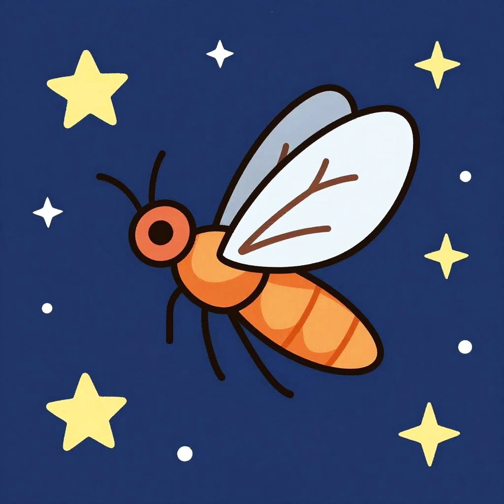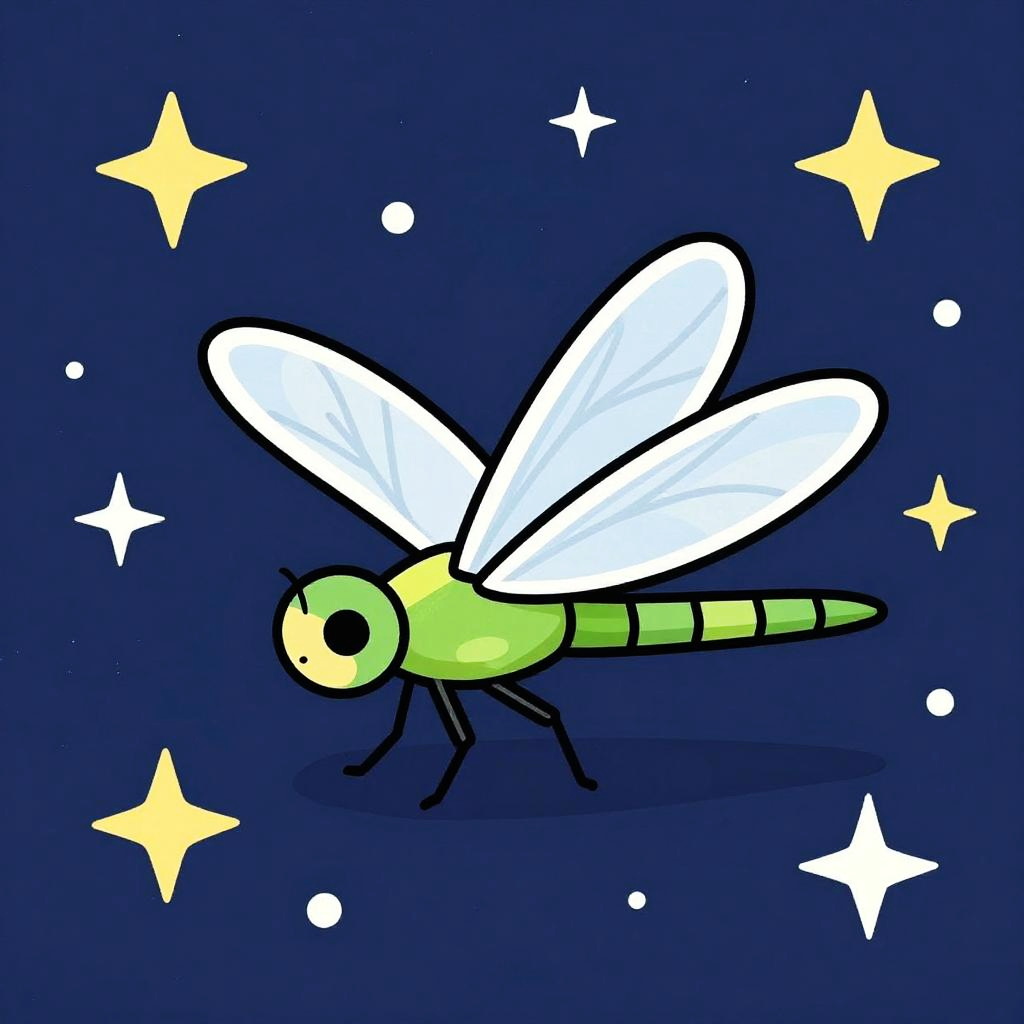 Colorful 2D illustration of a cute winged hedgehog under a starry night sky, with vibrant colors, whimsical star patterns, cartoon style, using simple shapes and a flat design.
