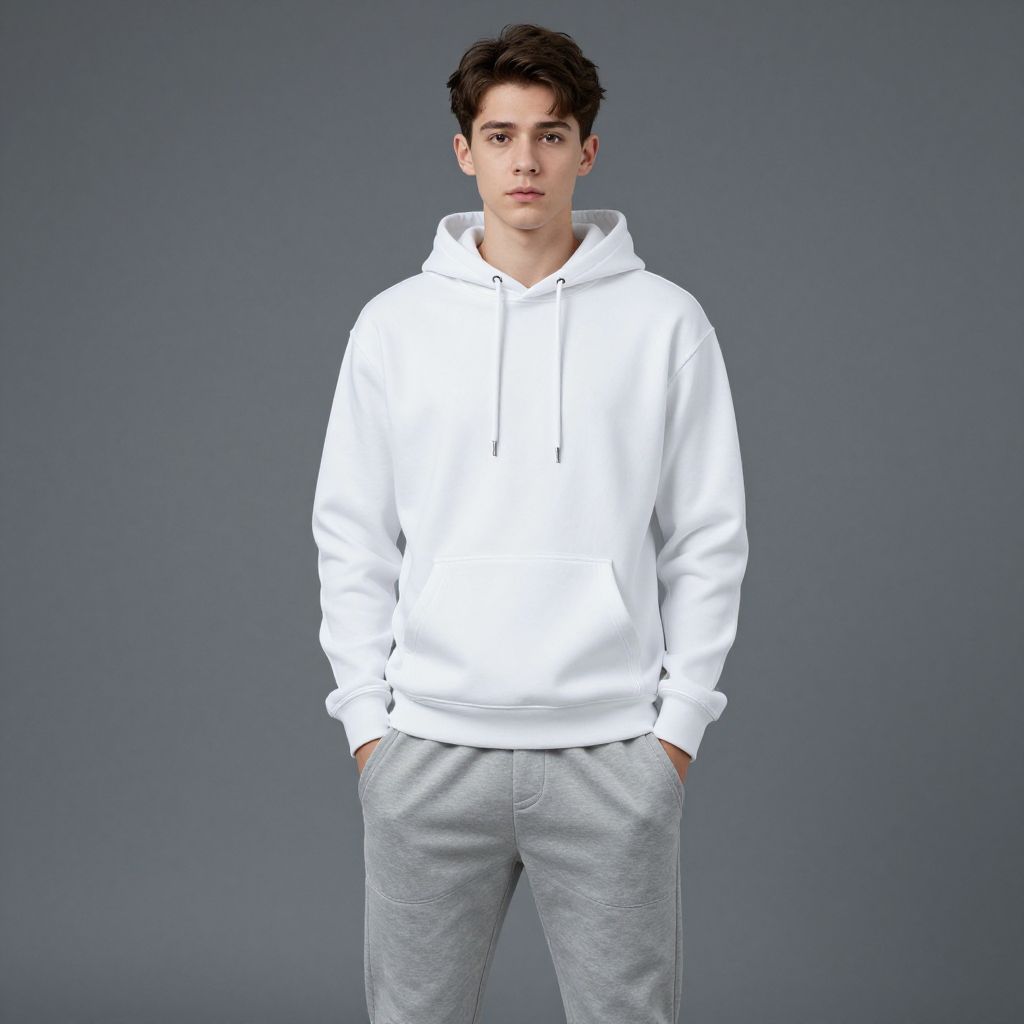 Boy in Pink Hoodie and Sneakers