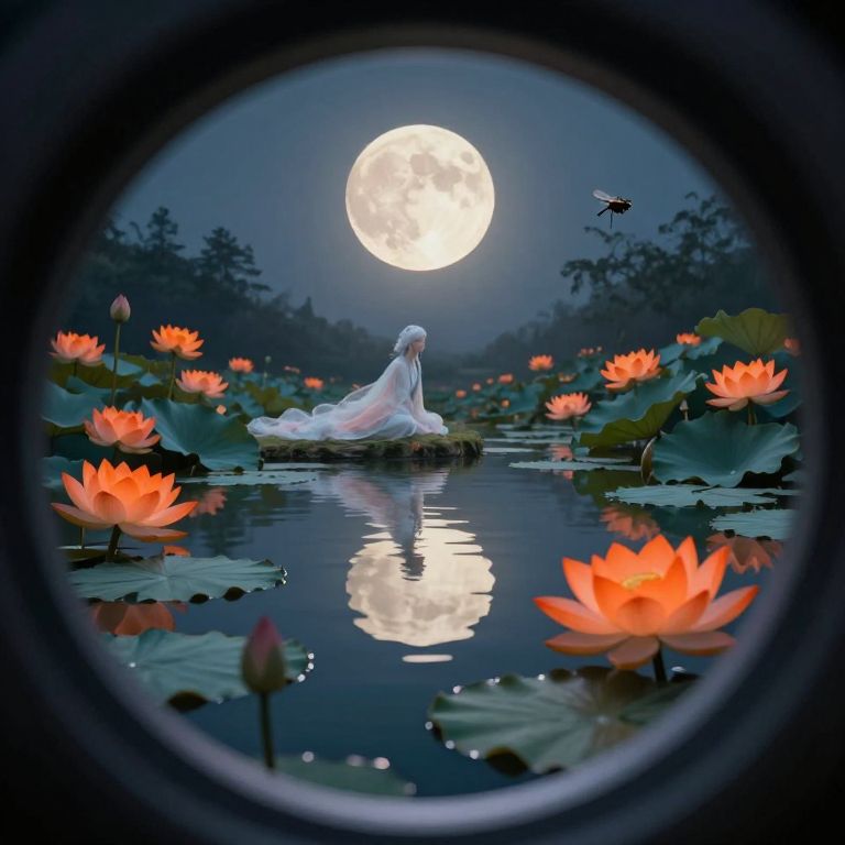 A surreal dreamscape depicting a tranquil lake at dusk, reflecting the distorted visage of an enormous clock face upon its mirrored surface. From a unique perspective akin to a 'bug's-eye view', observe a curious beetle traversing across delicate water lily petals as ethereal beams of light penetrate through the misty foothills and mountains in the distance. This evocative landscape oscillates between serene contemplation and unsettling unease, beckoning viewers into its dreamlike distortions of time and reality.