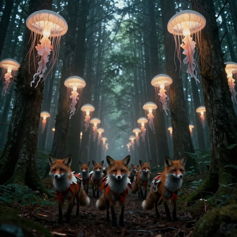 Ceremonial Foxes in Ethereal Forest
