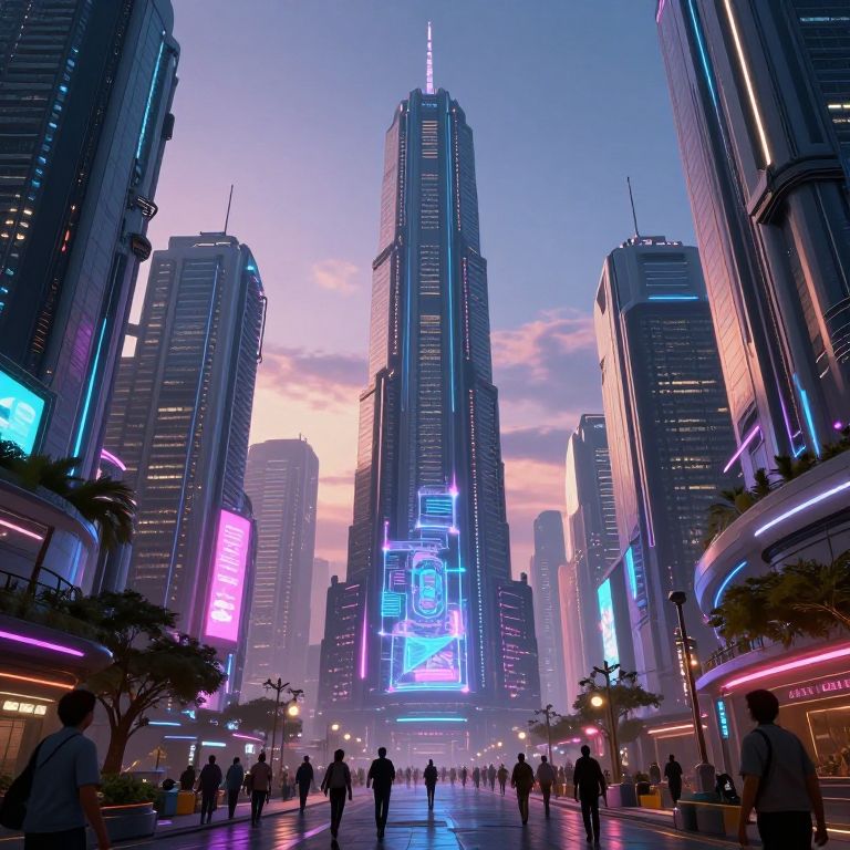 Cyberpunk City with Crystalline Mearl
