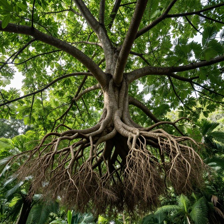 Roots reach skyward in a surreal dance of defiance, embodying the eternal struggle between gravity and aspiration, while the gentle rustle of leaves whispers a quiet rebellion against the laws of nature.