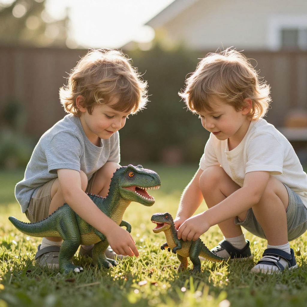 Joyful Boy Playing with Dinosaur Toy