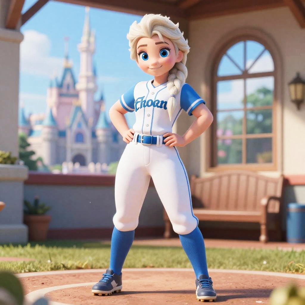 (ElsaWaifu:1), smile, cute, cute pose, looking at viewer, thick thighs, curvy, (baseball uniform), (realistic:1.2), (realism), (masterpiece:1.2), (best quality), (ultra detailed), (8k, 4k, intricate), (full-body-shot:1), (Cowboy-shot:1.2), (85mm), light particles, lighting, (highly detailed:1.2), (detailed face:1.2), (gradients), nsfw, colorful, (detailed eyes:1.2), (detailed ladscape, castle, furniture, window:1.2), (detailed background), detailed landscape, (dynamic angle:1.2), (dynamic pose:1.2), (rule of third_composition:1.3), (Line of action:1.2), wide shot, daylight, solo