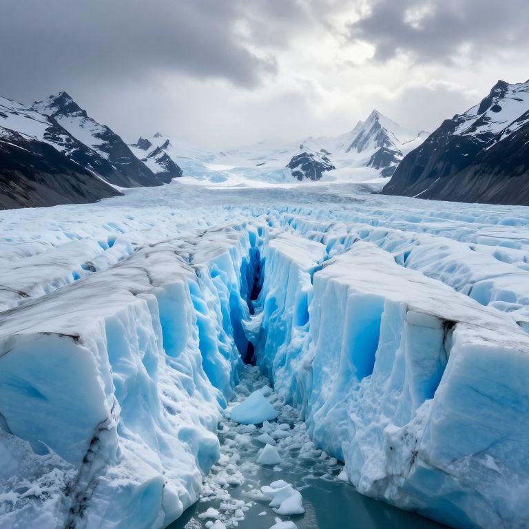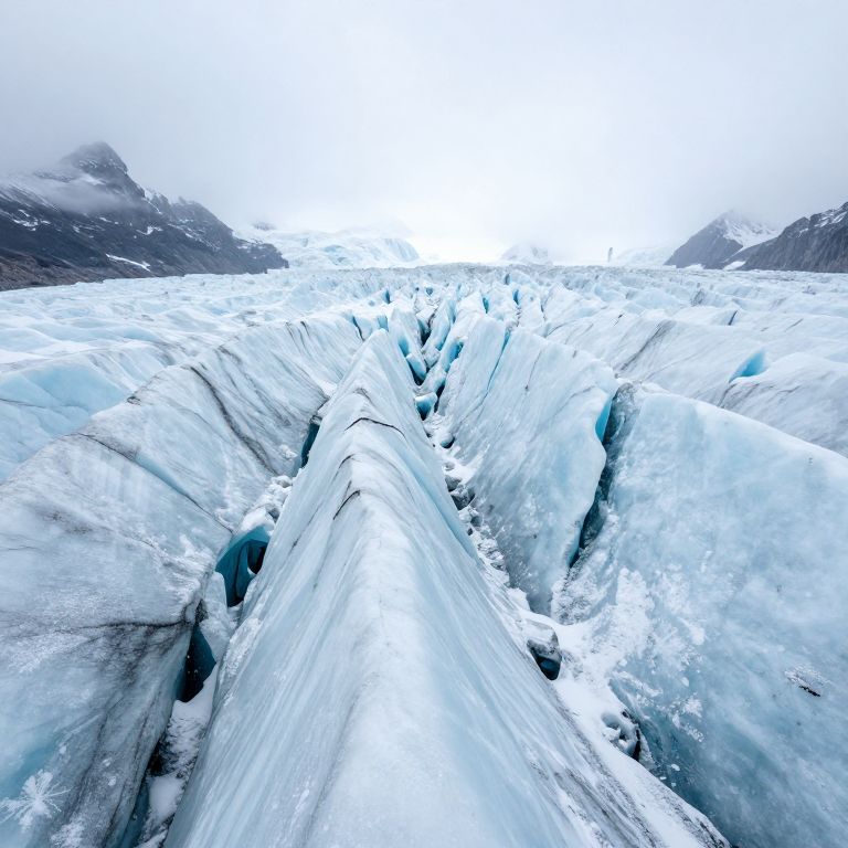 A glacier made of solidified laughter slowly carves a symphonic shape into the valley below, composing a new song each spring as it melts.