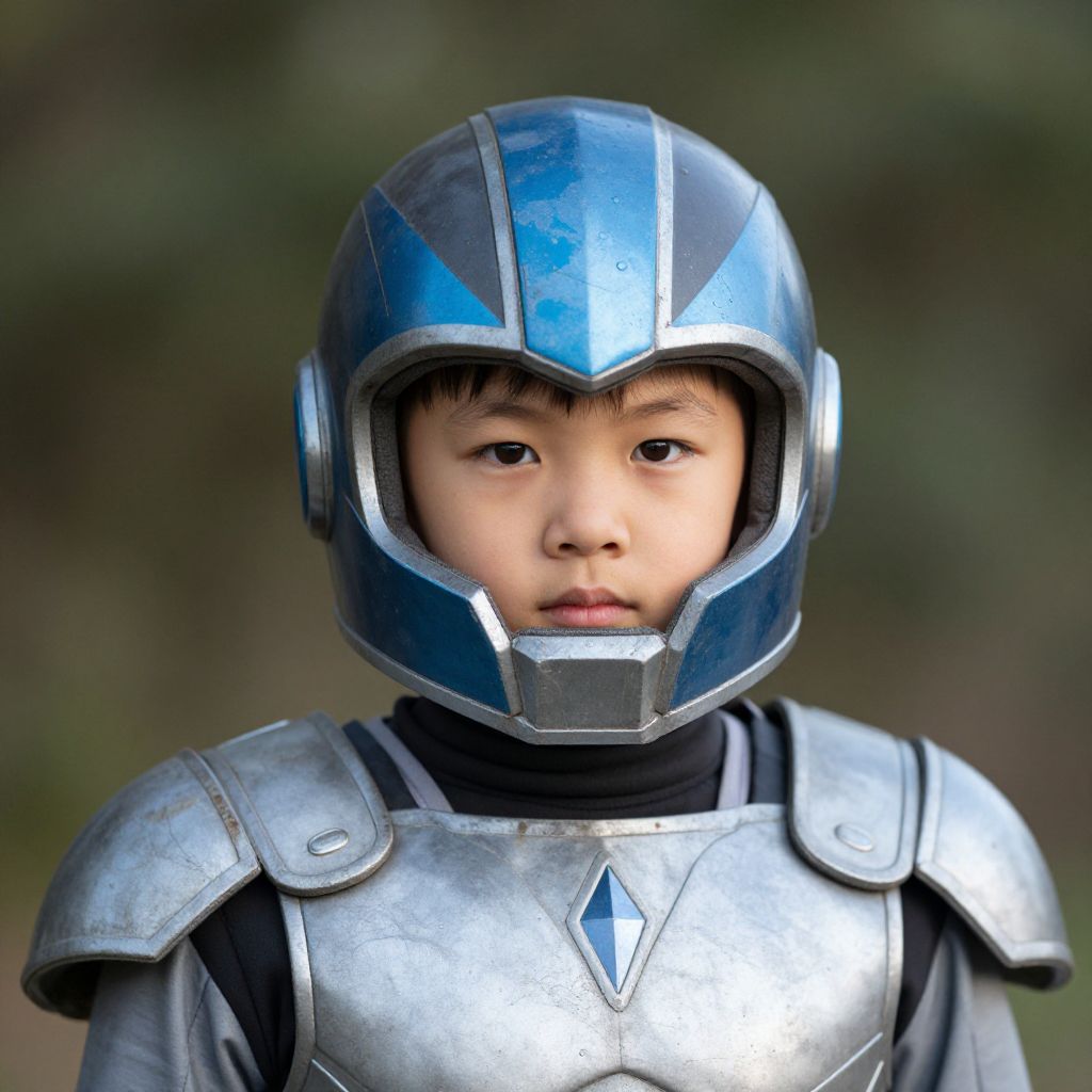 Captain planet costume, 1boy, male focus, solo, realistic, helmet, armor, looking at viewer, upper body