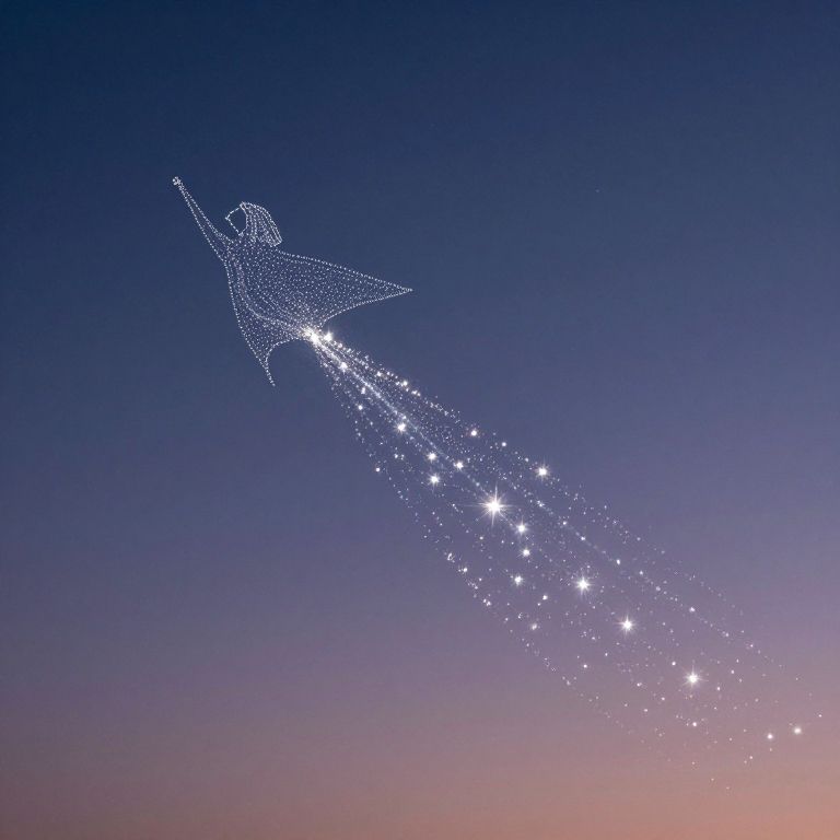 A celestial messenger composed of starlight and whispers of wonder soars through the twilight, leaving behind a trail of sparkling dreams and forgotten memories, inviting the soul to transcend the boundaries of time and embrace the infinite promise of freedom.