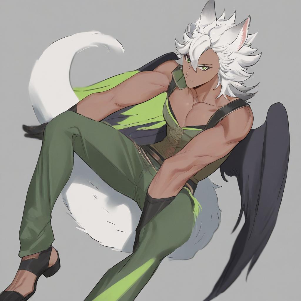 Jack howl, twisted wonderland, 1boy, wolf boy, dark-skinned male, wolf ears, wolf tail, animal ear fluff, yellow eyes, short hair, white hair, by artist suisogenshi, leet