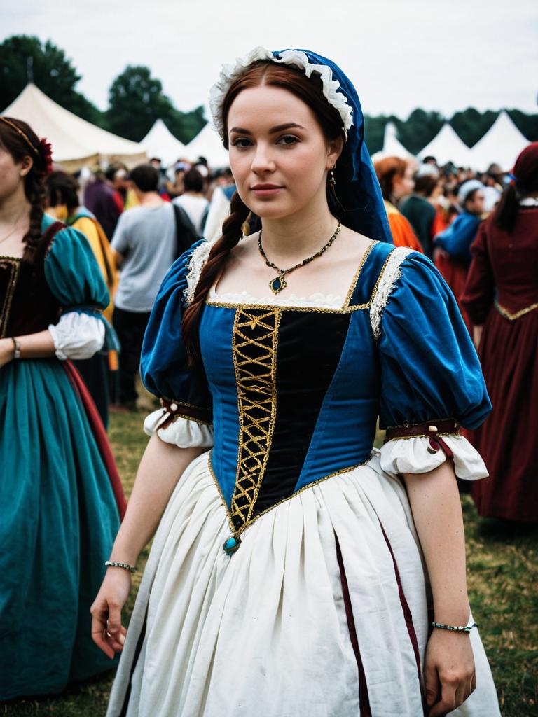 Woman in Renaissance Gown, cosplay festival photo, photorealistic realism