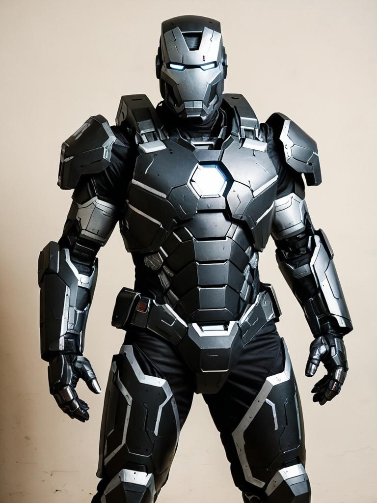 Man cosplay. Wearing War Machine costume. Realistic photo. Dressed as War Machine --sref 1400