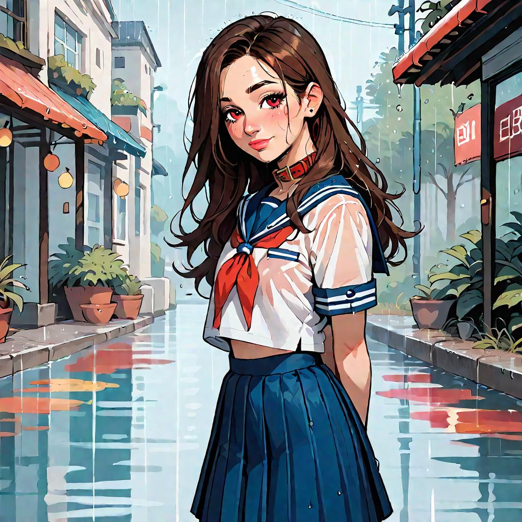 Happy Anime Girl in Wet Sailor Outfit