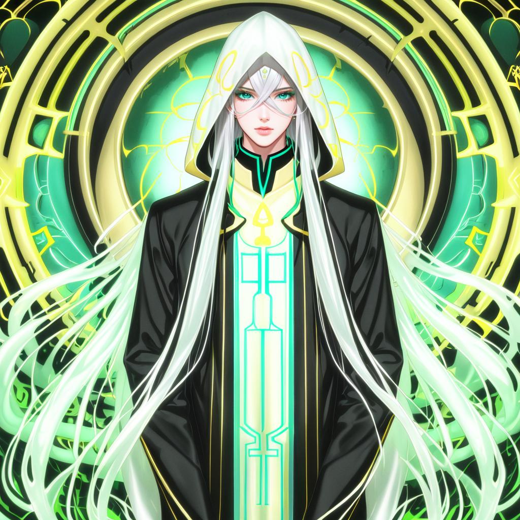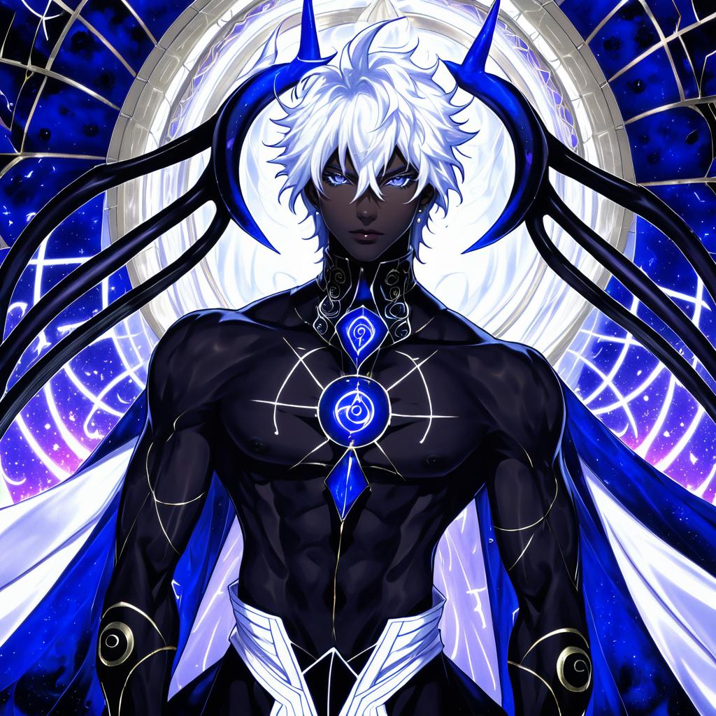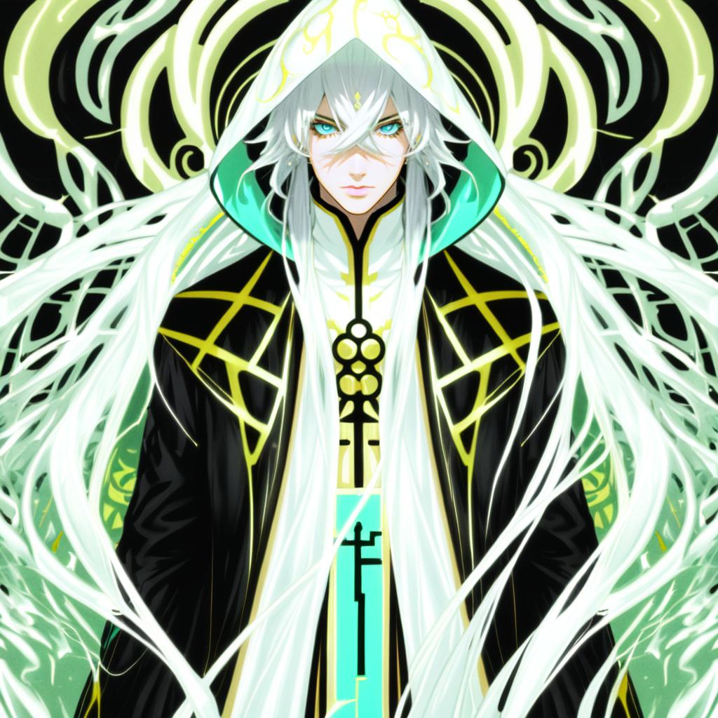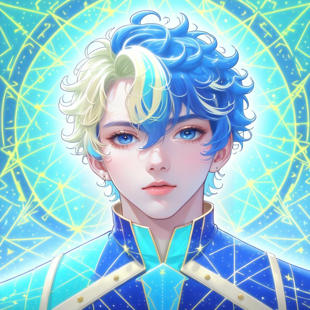 Argalia (project moon), project moon, 1boy, blue eyes, very long hair, white hair, sidelocks, hair ornament, blue cape, blue jacket, collared cape, black pants, long sleeves, gold trim, white ascot, by artist yuuyuu (yuuki1771), anime