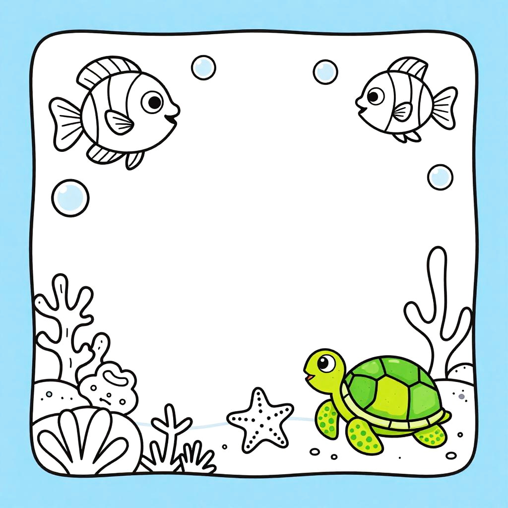 Underwater Theme Black and White Coloring Sheet