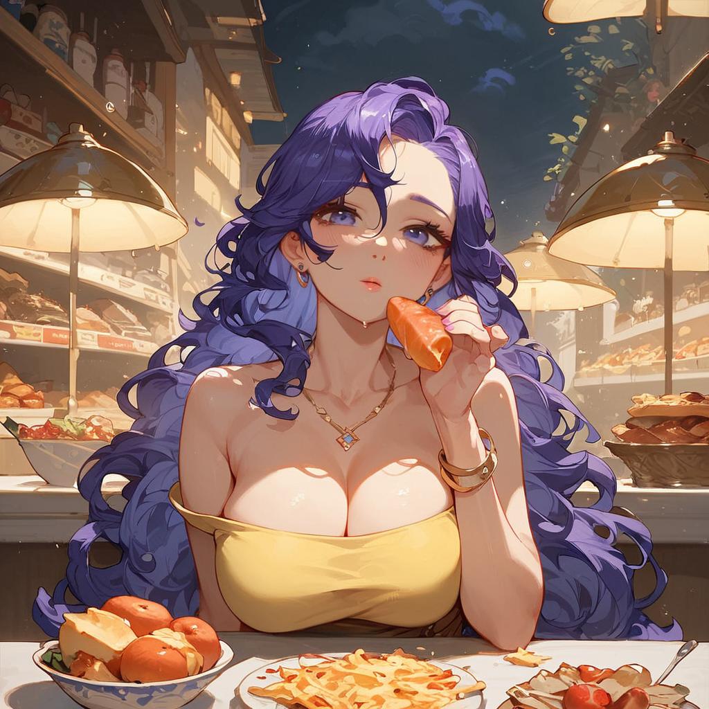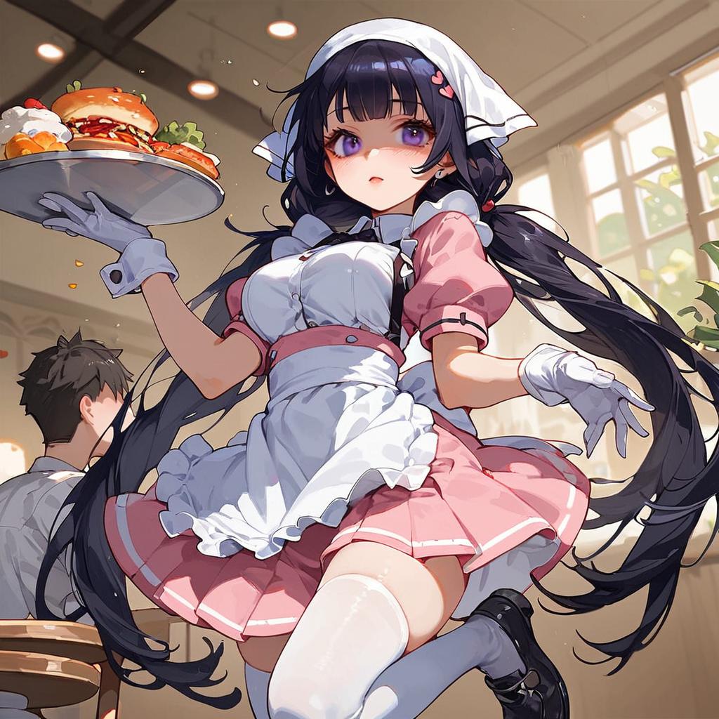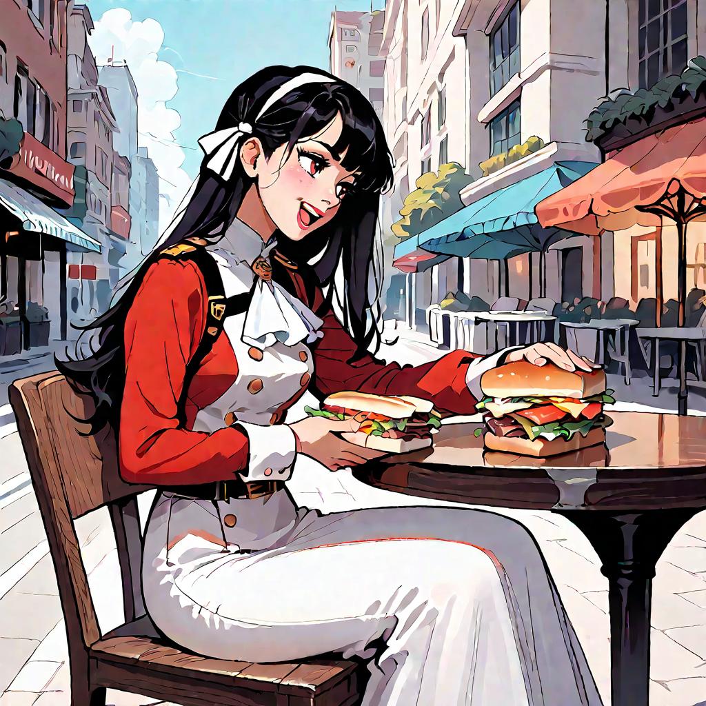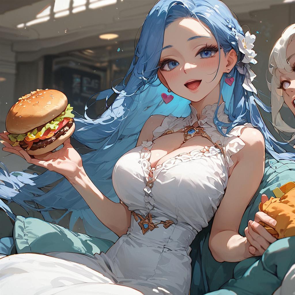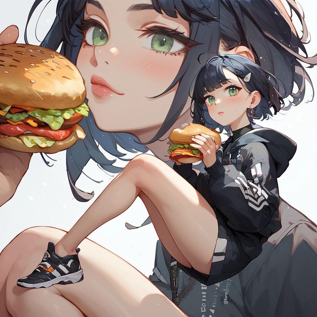 Anime Girl Holding Hamburger Kneeling