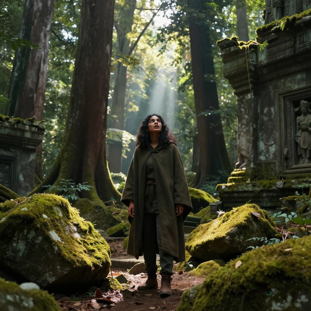 Anashim engaging in a serene ritual in a lush forest clearing, surrounded by towering trees and soft beams of sunlight filtering through leaves, peaceful expressions, natural earthy tones, intricate hand gestures, spiritual and harmonious vibe with subtle ethereal glow.