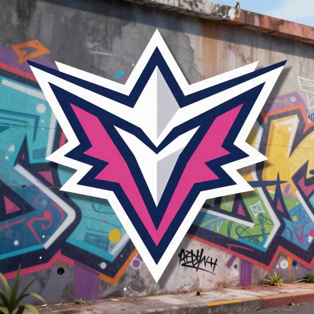 A sleek and modern esports team logo featuring a vibrant, multicolor palette with sharp, clean lines. The design has an urban street and graffiti wall theme with edgy, dynamic shapes radiating from a central diamond shape, conveying energy and professional esports culture.