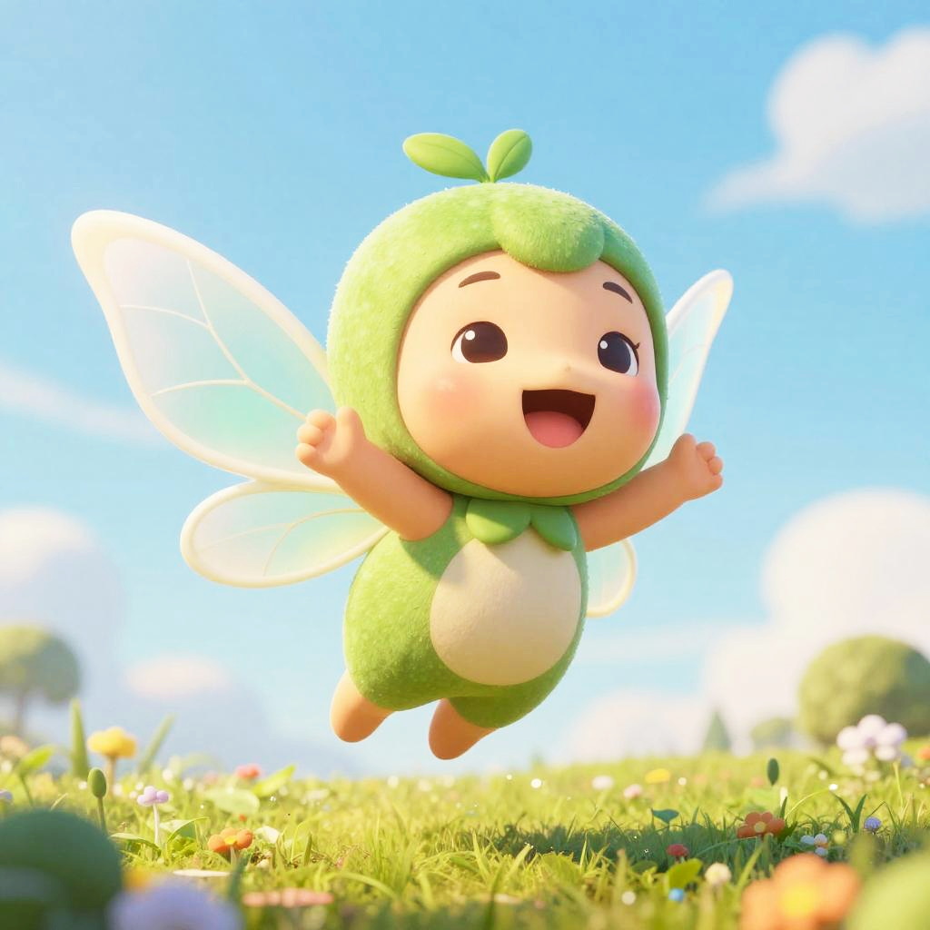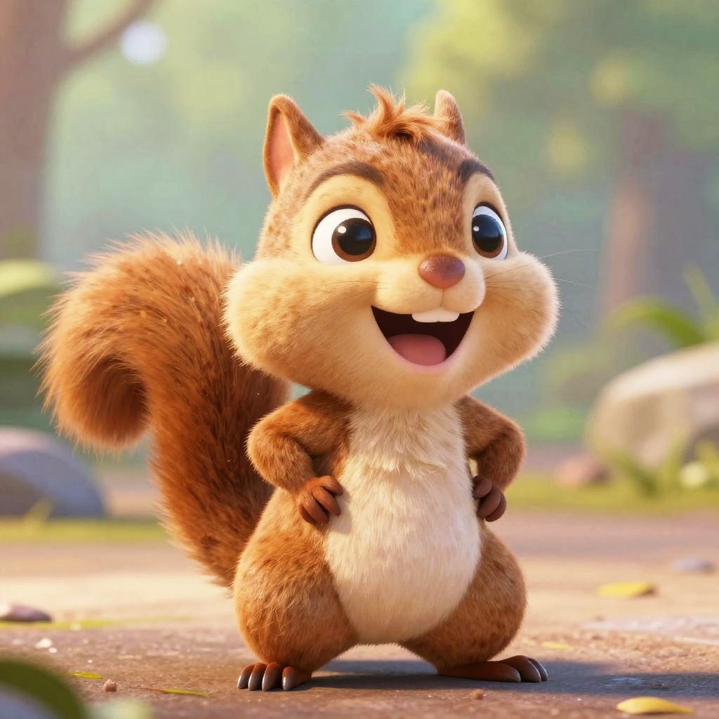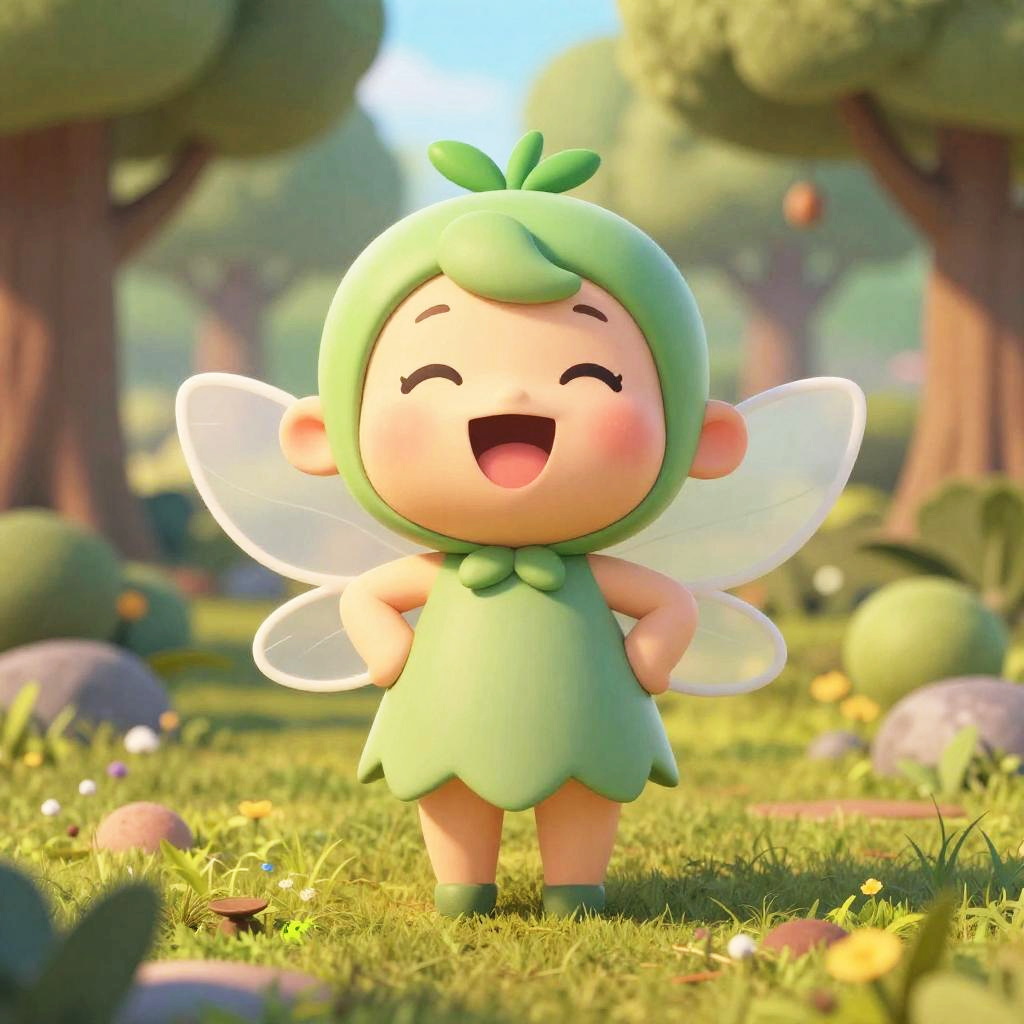 3D animation, kawaii, playful puppy, chuckling, tail wagging.