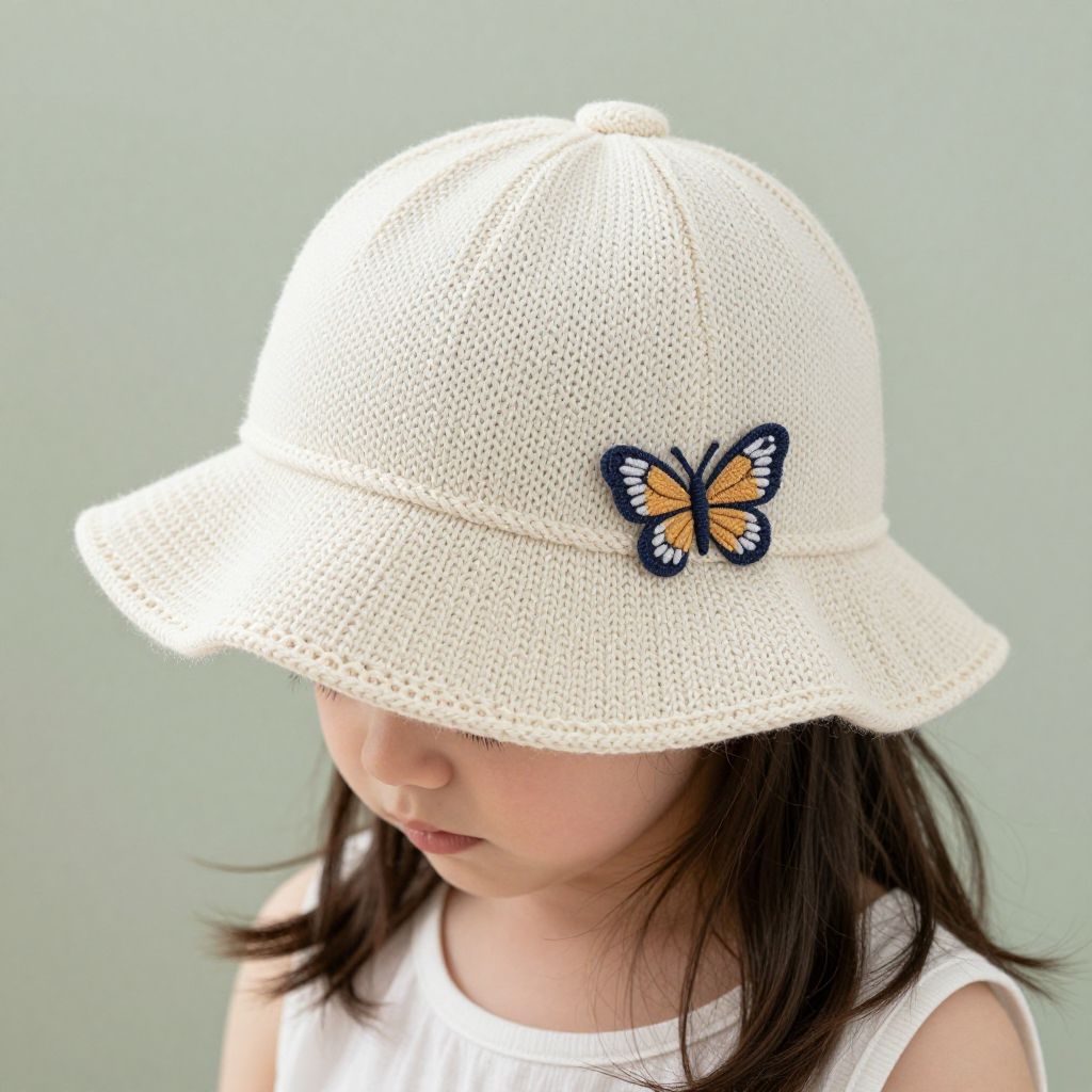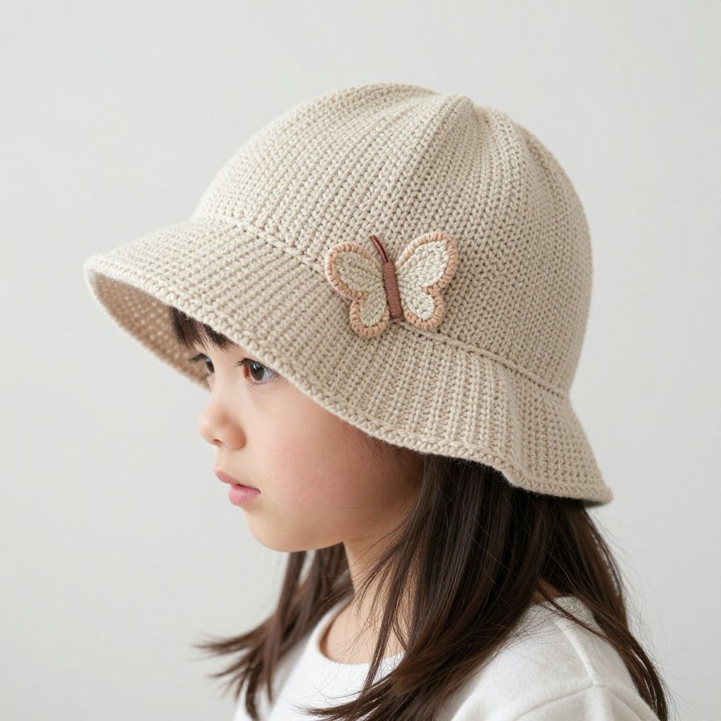 KNITTING PATTERN brim sun hat Mary with a butterfly (baby, toddler, child, woman sizes)