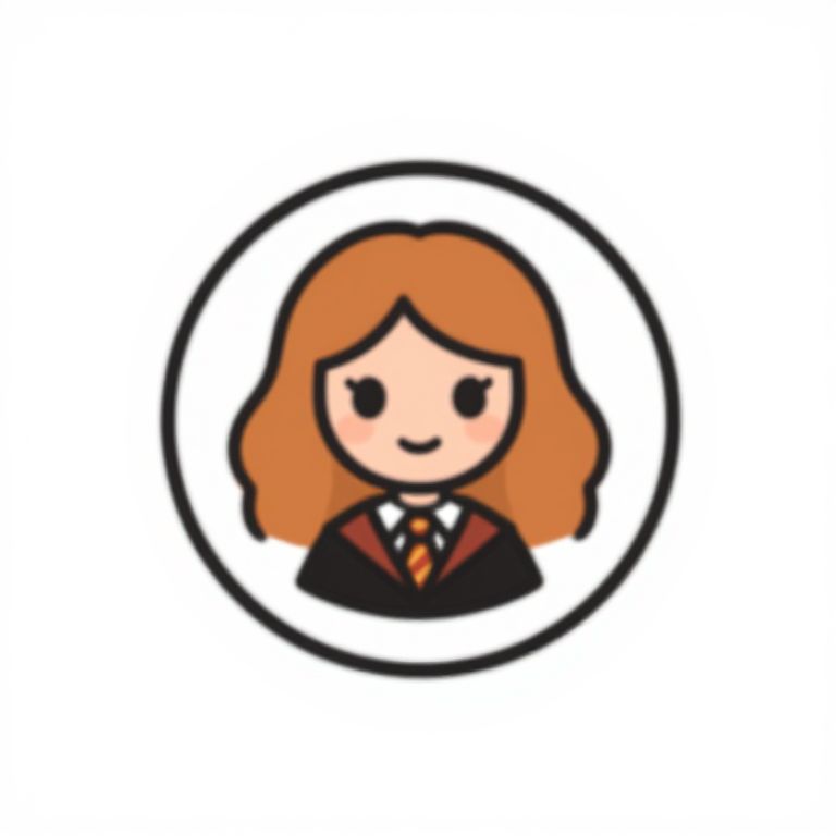 Hermione Granger Design a logo, a cute intelligent assistant, feature, unreal engine, flat, white background, vector, round,