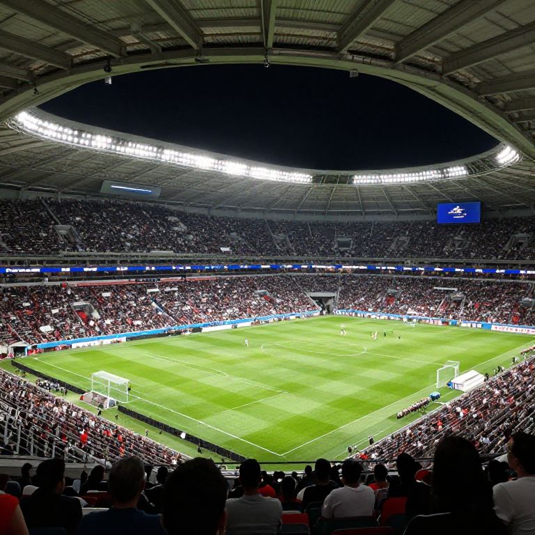 Well Preserved soccer stadium, full of people tribunes, view from soccer player eyes, night, dramatic light, photorealistic, ultra detailed, 8k,