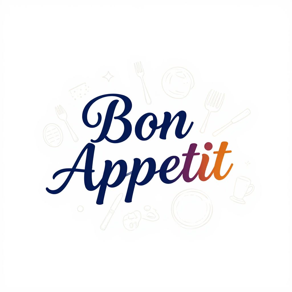 Bon appetit logo designed with elegant typography, vibrant colors, and subtle food-related illustrations like cutlery and plates, set against a clean white background, suitable for a modern gourmet restaurant branding, minimalistic yet inviting style
