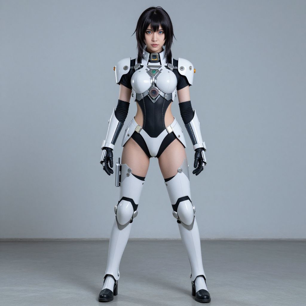 Data Theft beautiful face woman wearing exia gundam armor cosplay,perfect body, instagram model full body angle view,
