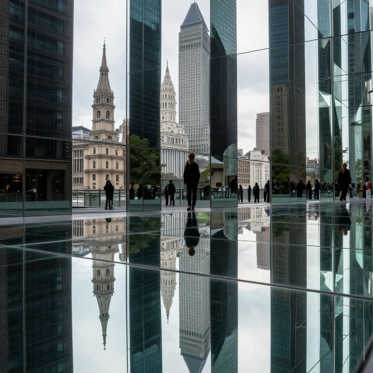 A city built entirely of mirrors reflects not the viewer’s image, but their strongest regret, reshaped into haunting, beautiful monuments.