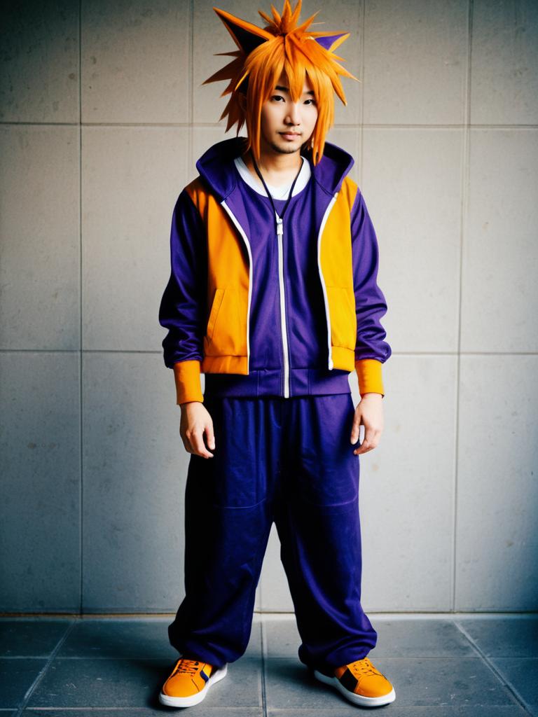Man cosplay. Wearing Neku Sakuraba costume. Realistic photo. Dressed as Neku Sakuraba --sref 1388