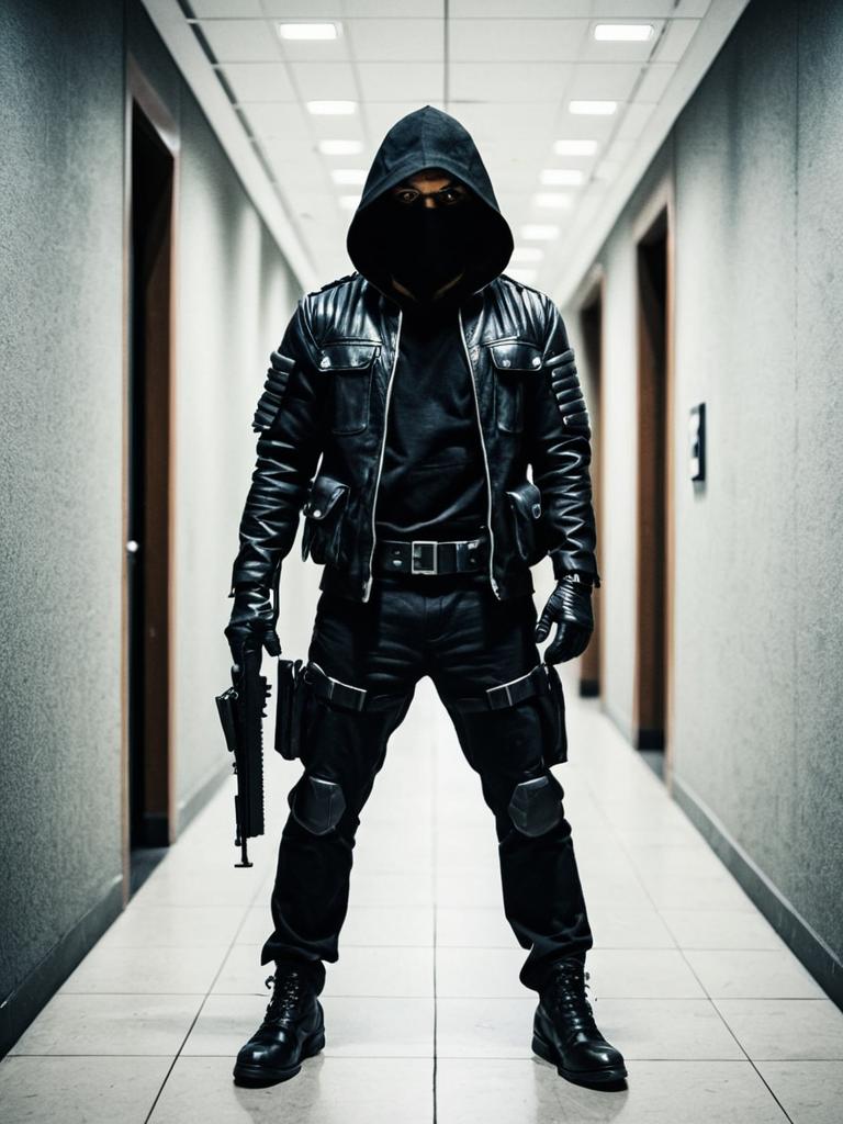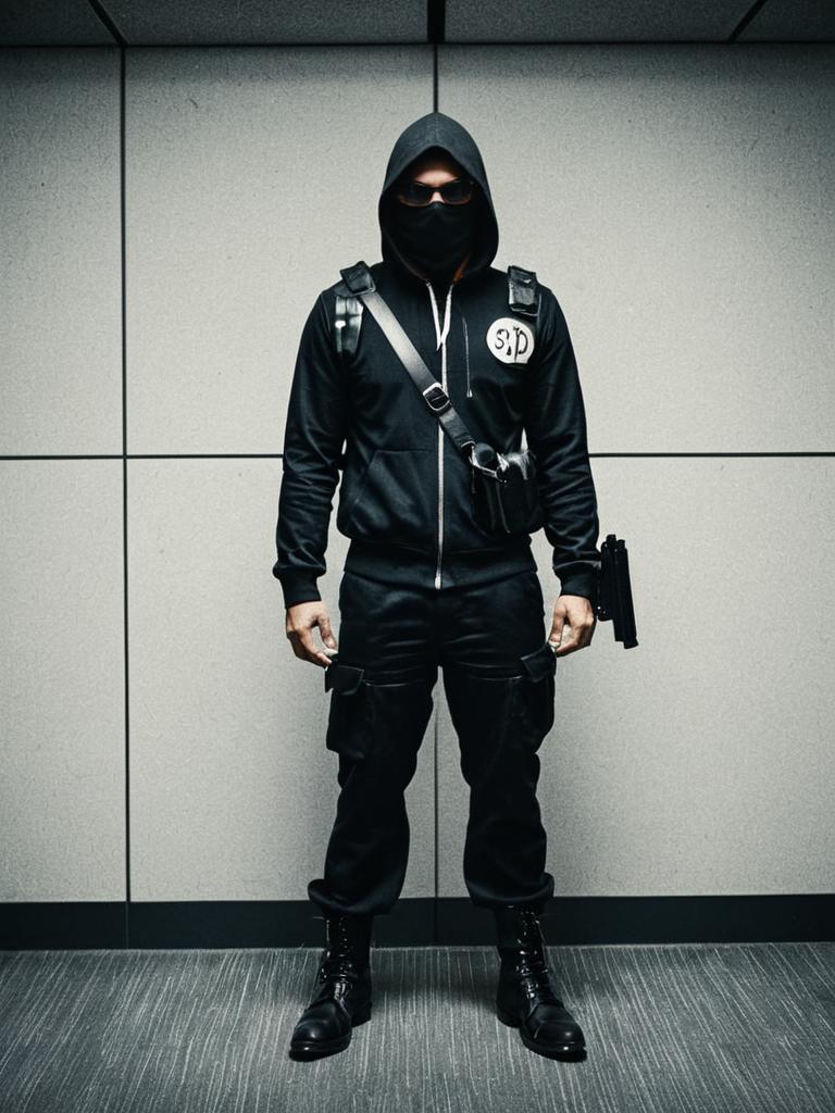 Man in Robber costume, full-body cosplay photo, photorealistic style