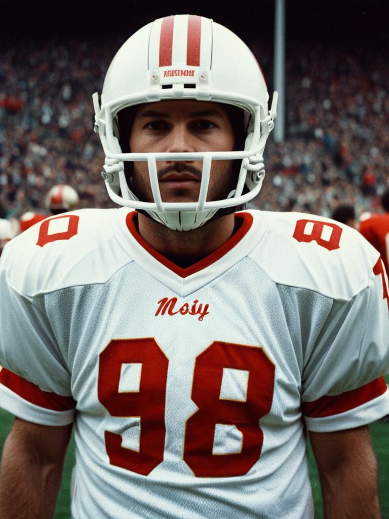 Man in Football Jersey Costume, cinematic realism, sharp detailed shot