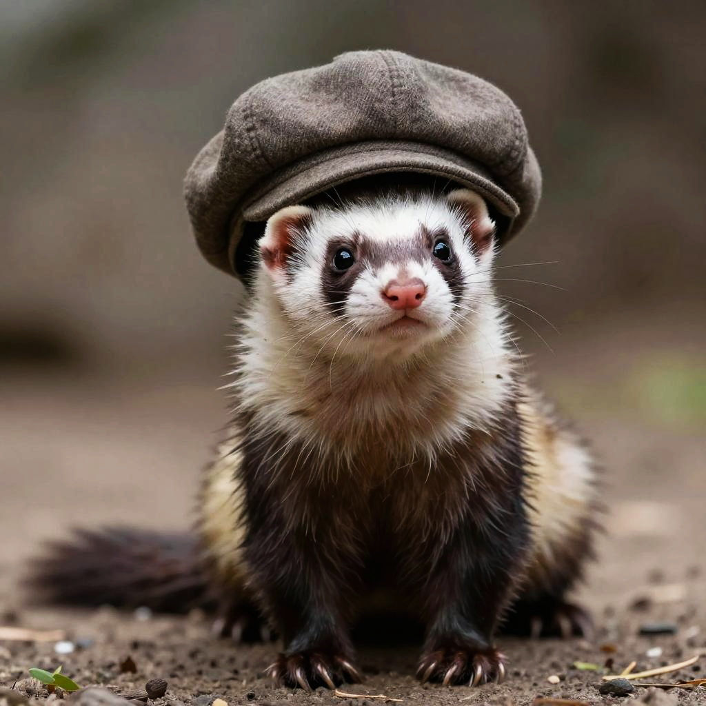 Ferret Wearing Newsboy Cap