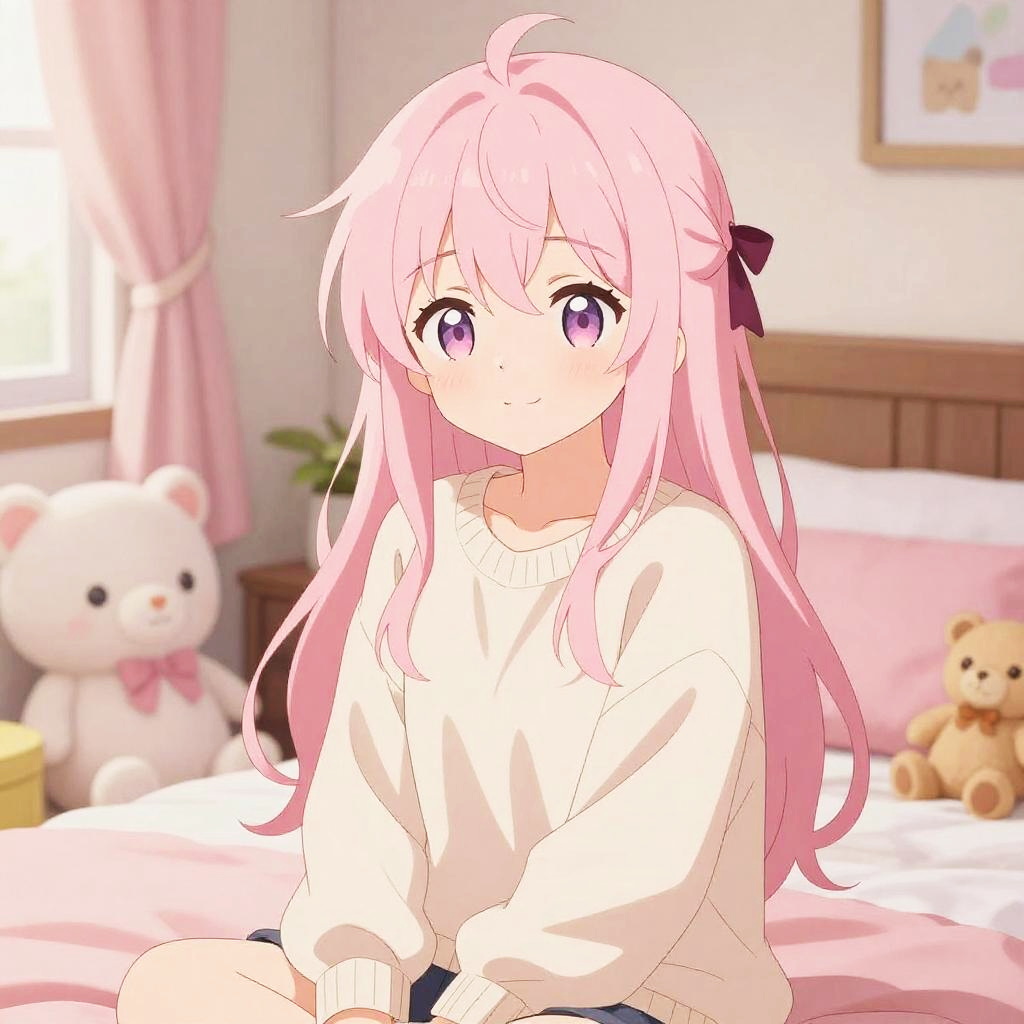 Androgynous Anime Girl with Lavender Hair