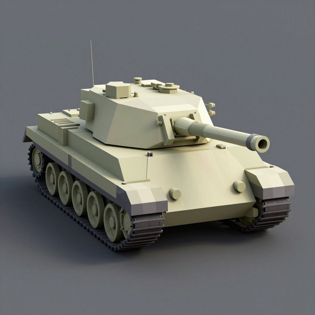 A low poly model of abrams like tank, in the center of the image, tank has a large solid cannon, full view of the tank including cannon, strategy game