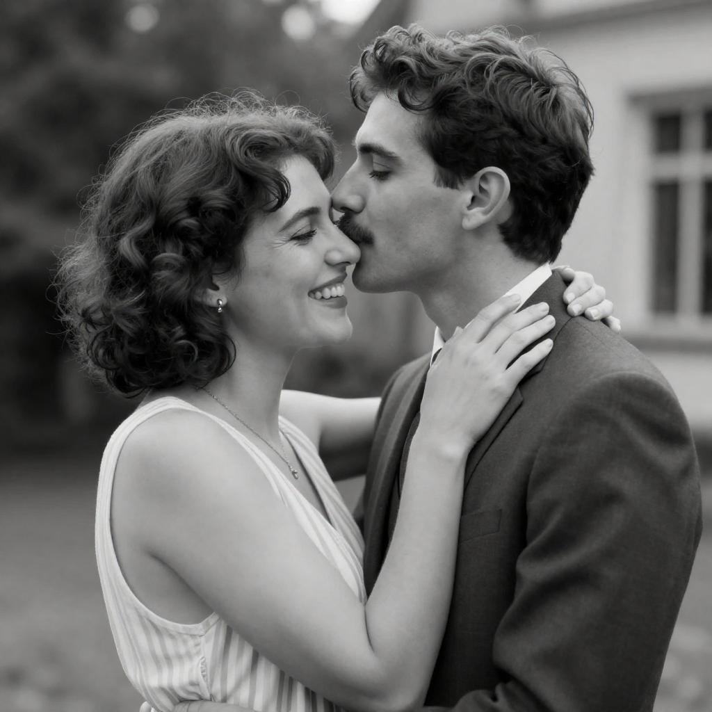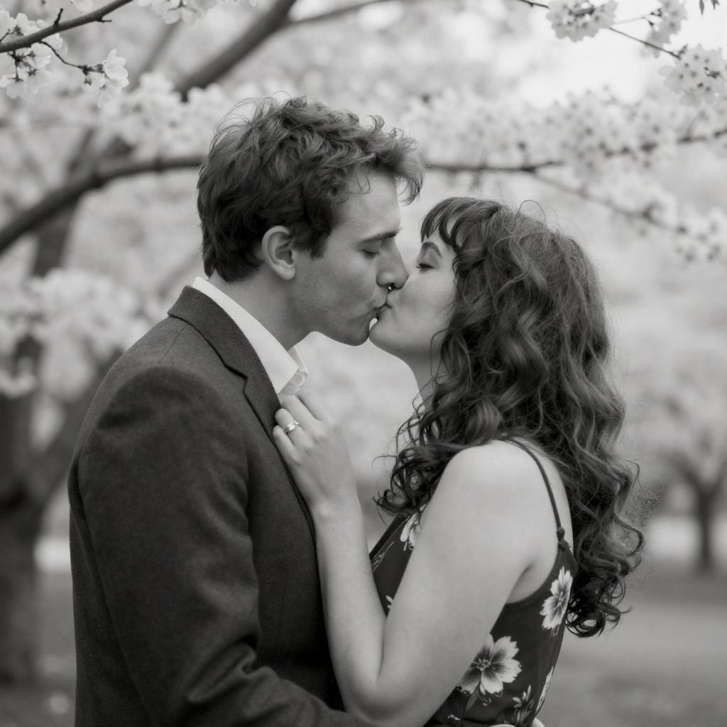 Romantic Black and White Kiss Moment