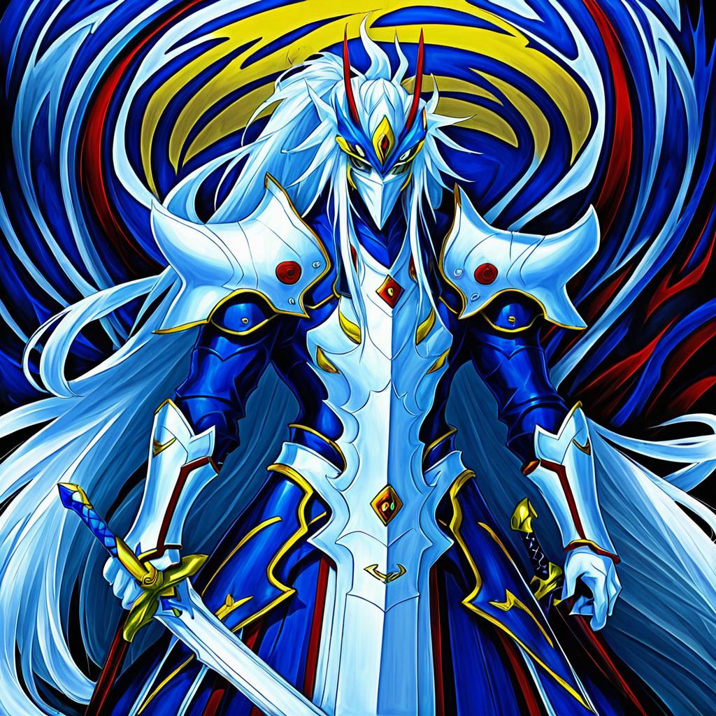 Illustration of Hakumen, blazblue in the style of Kouda tomohiro