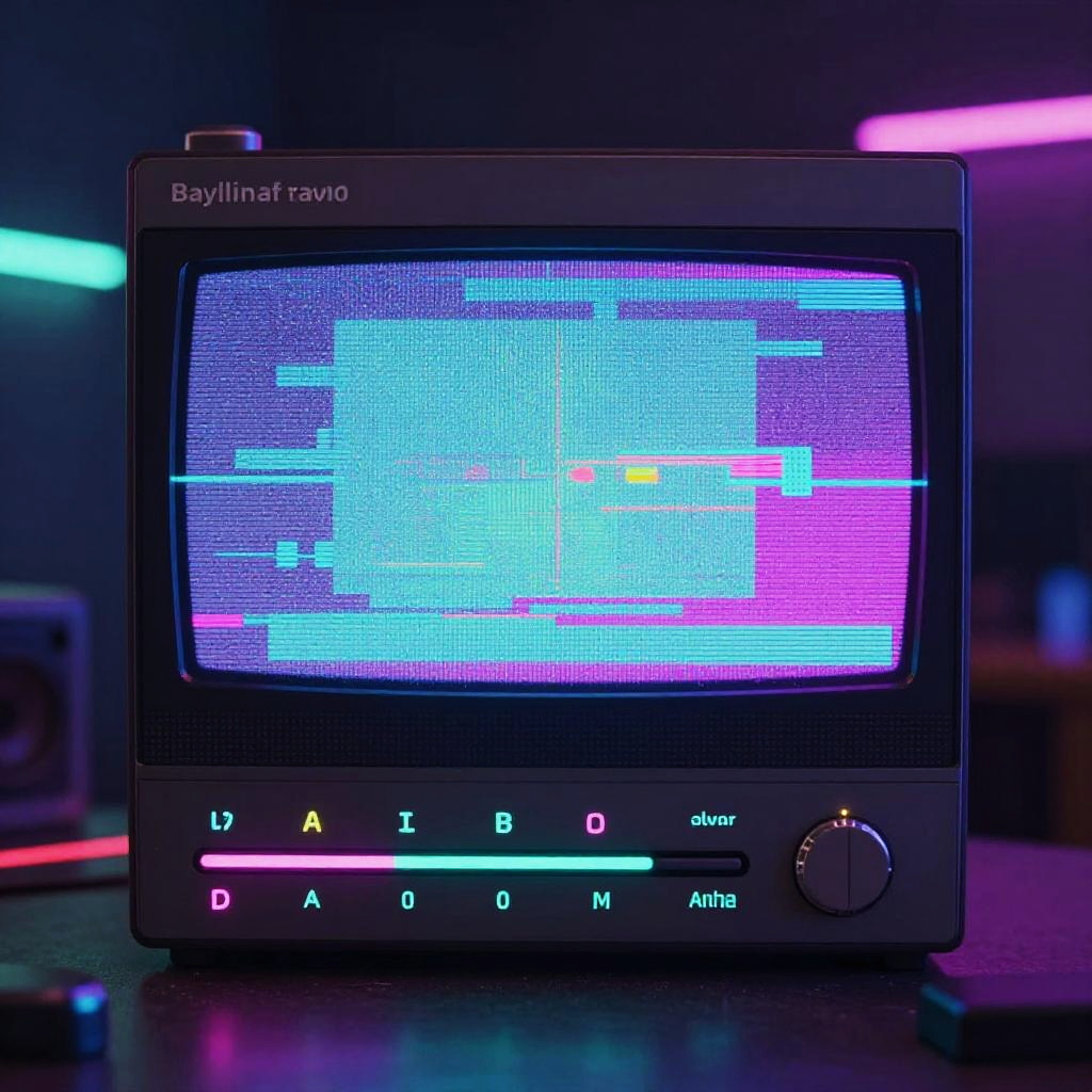 Mugshot sign generator on a retro computer monitor, pixel art style, showing adjustable text fields and drag-and-drop elements, vintage tech aesthetic with dimly lit detective office setting