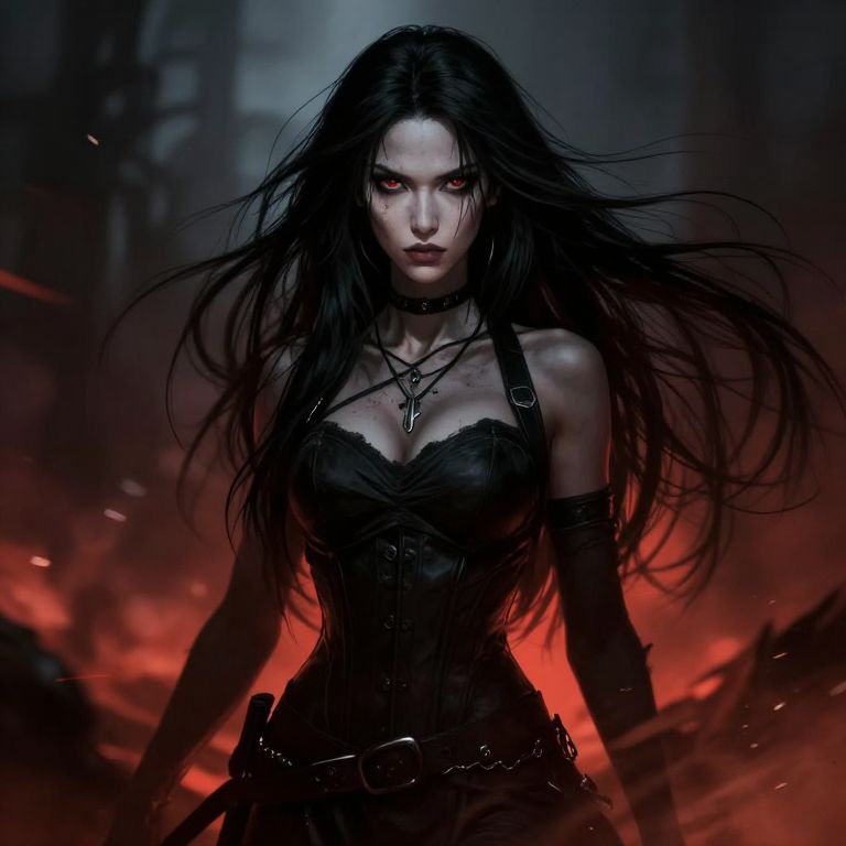 Histogram dungeons & dragons, female half-orc thug, long black hair, thin face, guweiz art style, dynamic lighting, portrait, 4k,