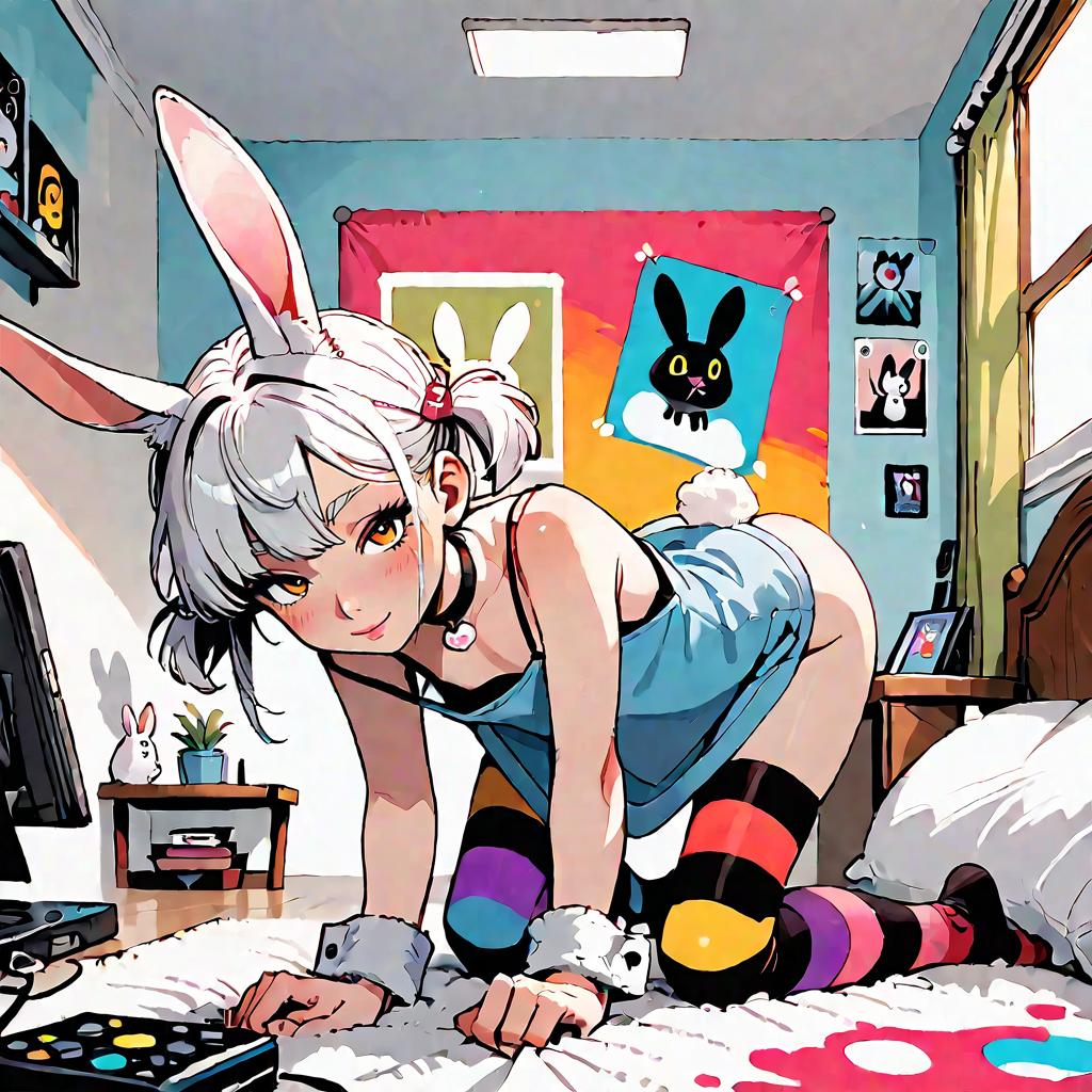 Anime Girl in Bunny Outfit in Colorful Room