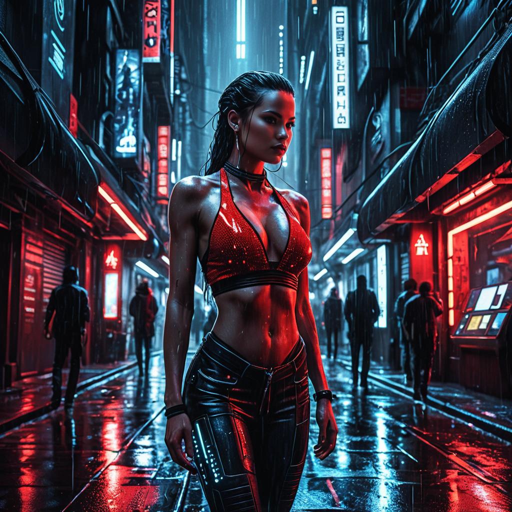 Steampunk alchemist girl on sun-drenched antique market street, wearing a form-fitting red halter top, highly detailed digital painting, artstation quality, smooth, hard focus, cinematic lighting, illustration inspired by James Gurney.