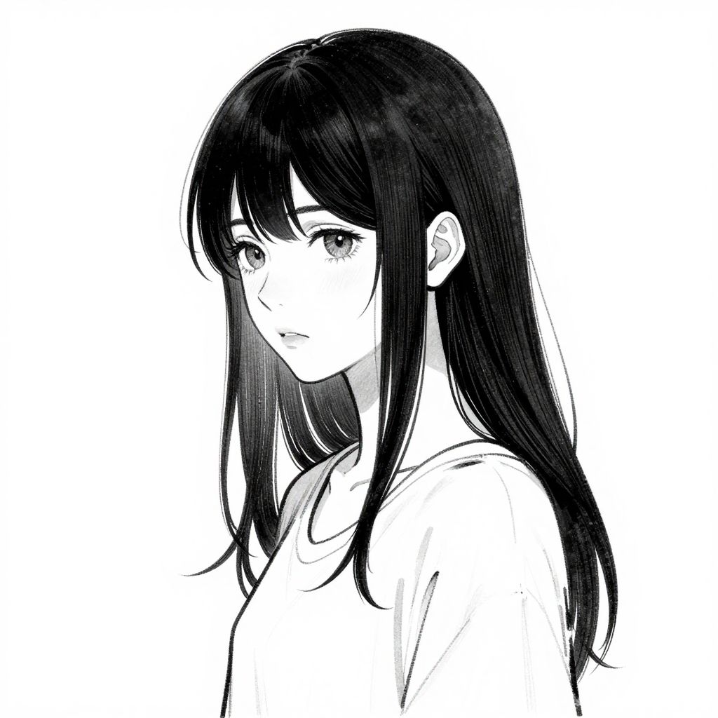 1girl, (outline:1.2), Monochrome