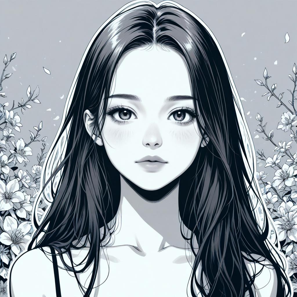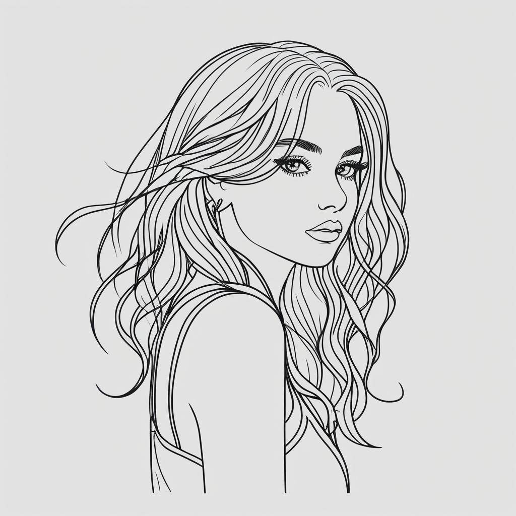 Monochrome Outline Girl Illustration