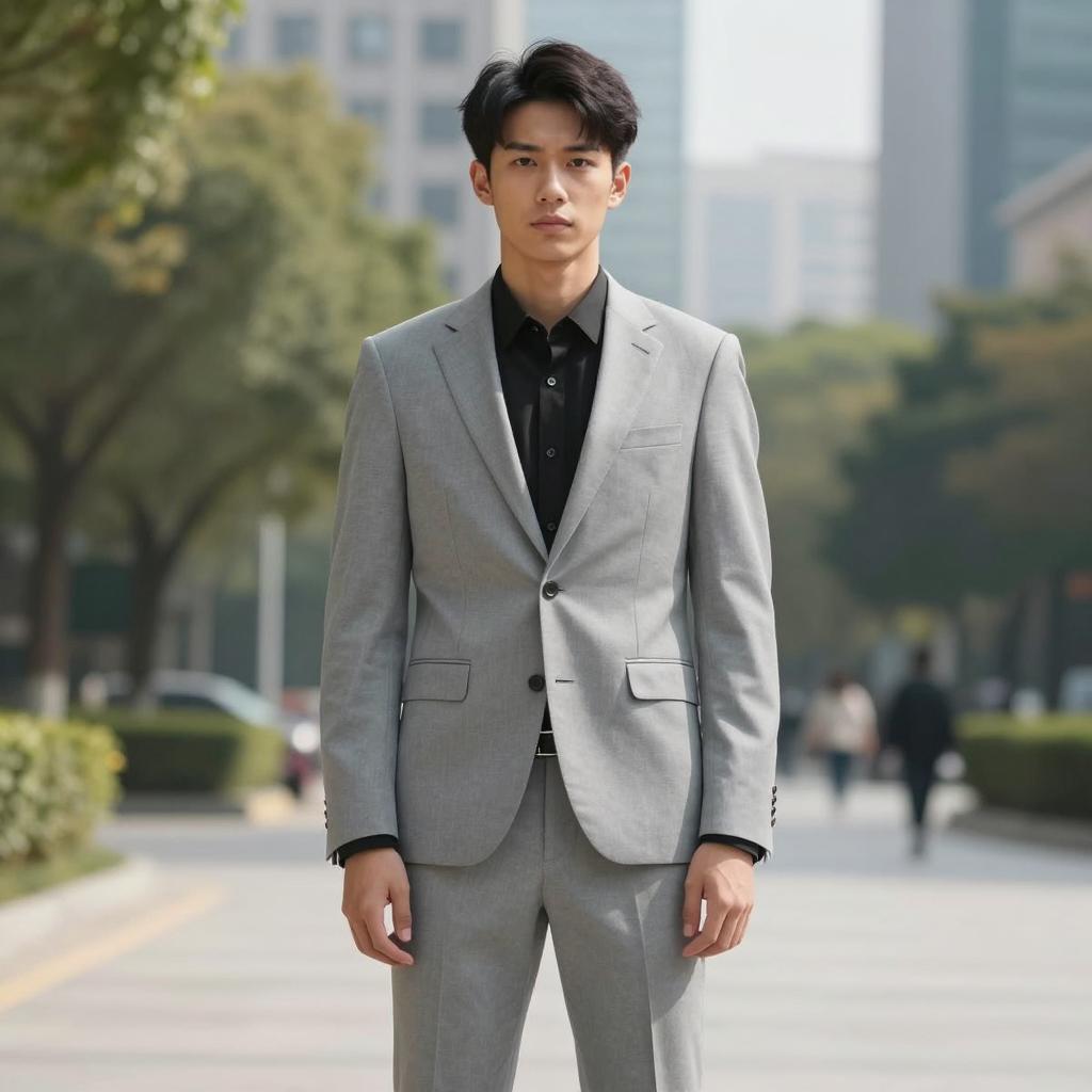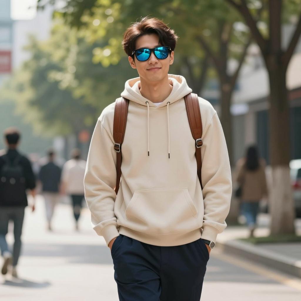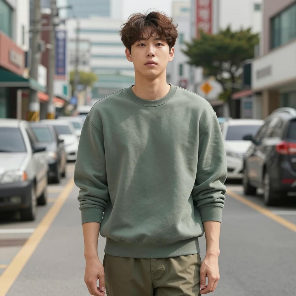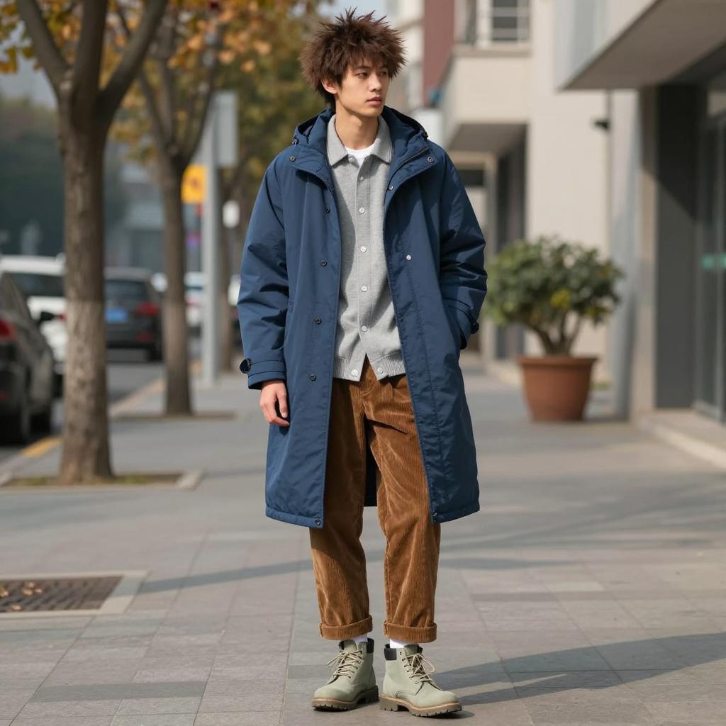 Young Man in Casual Brown Cardigan Outdoors