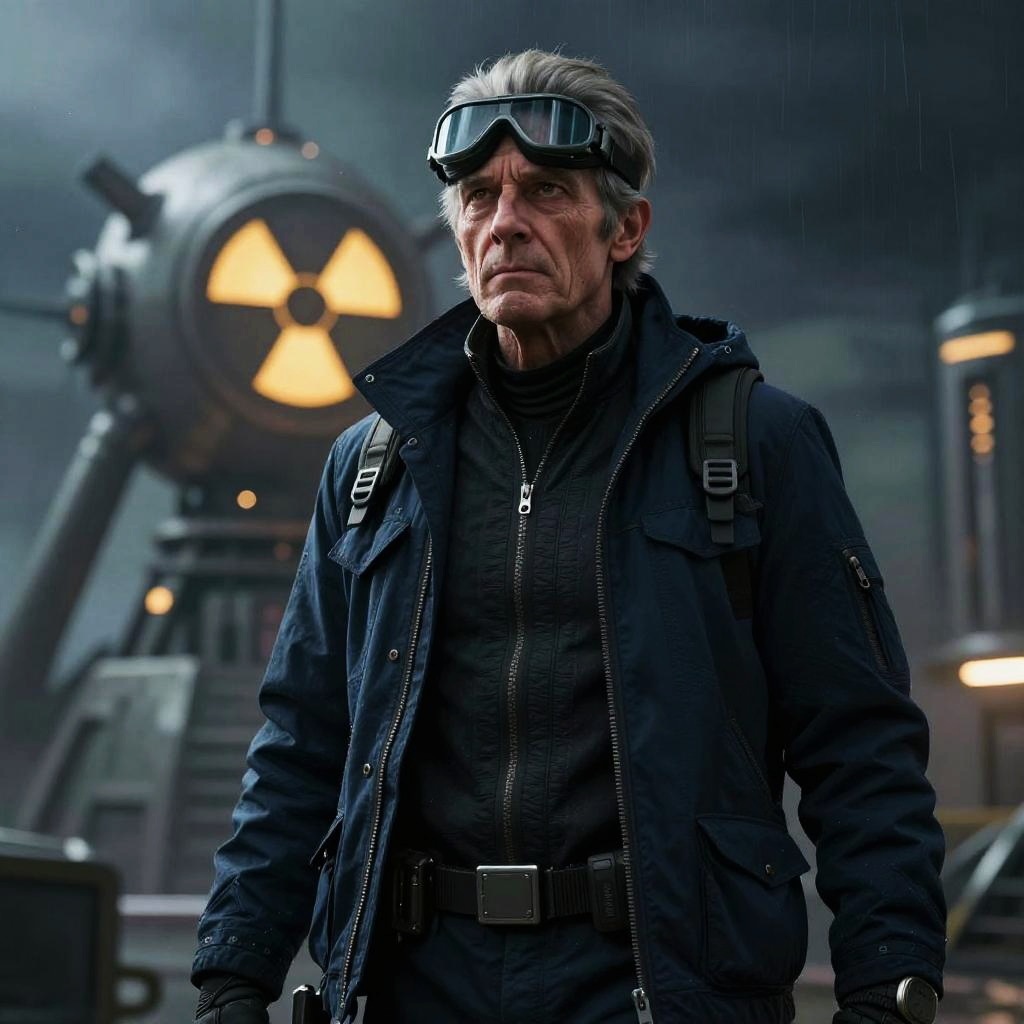 Rick Sanchez realistic illustration, close-up of a middle-aged man with spiky gray hair and piercing eyes, carrying a cynical expression, surrounded by glowing scientific instruments and alien technology, highly detailed textures with dramatic lighting, hyper-realistic art style.
