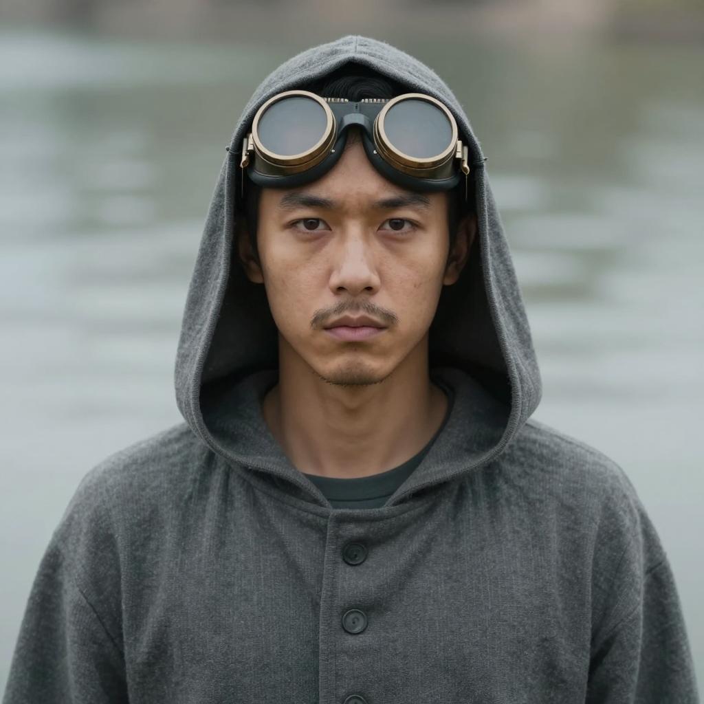 Minimalist Architecture A medium-wide cinema shot of a goofy 35-year-old asian man holding a corded beard trimmer, his hair is standing up on end as if hes just been electrocuted, he is surprised, with the warm fluorescent light of a YMCA locker room. The shot is from a commercial captured by Alexa mini with a 50mm Summilux-C.,