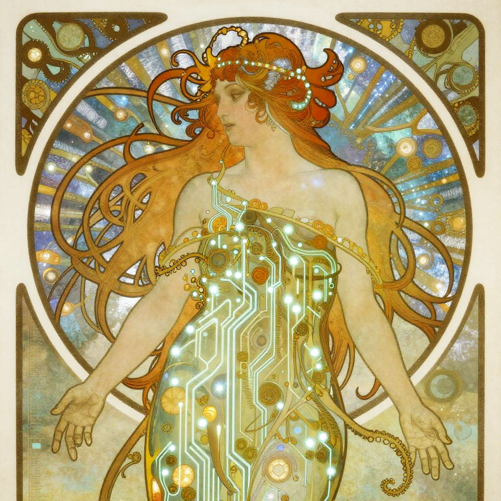 Cybernetic Nymph in Art Nouveau Style