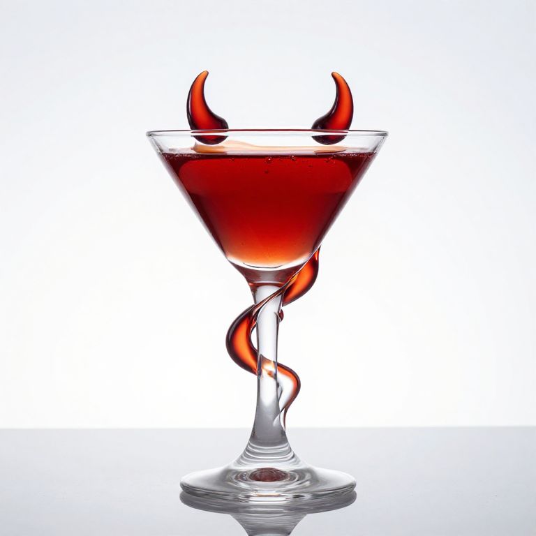 Cyberpunk Film wavy abstract shaped cocktail glass devil on white background highly realistic cinematic lighting,